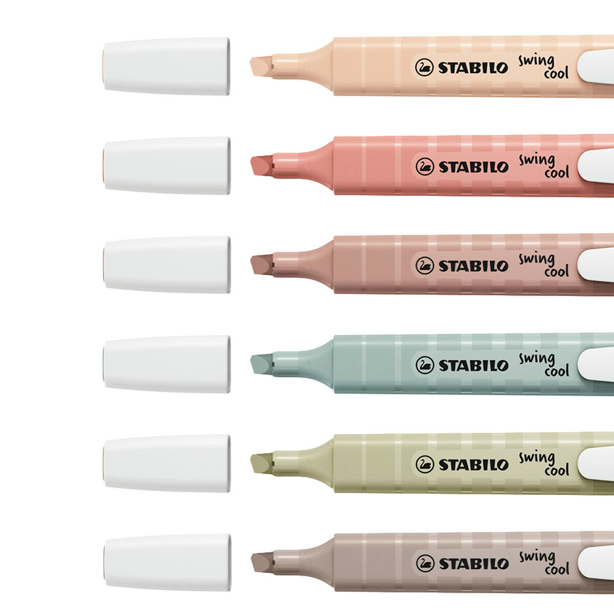STABILO スタビロ スイングクール ネイチャーカラー 6色セット くすみカラー 蛍光ペン 6色セット パステルカラー かわいい 文房具 水性インク 速乾 チゼルチップ 裏移りしにくい 勉強 おしゃれ ステーショナリー