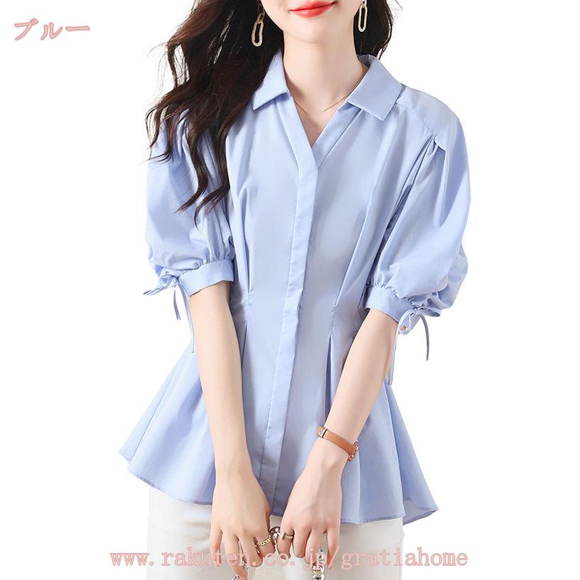 500円OFFクーポン シフォン シャツ ブラウス レディース パフスリーブ Vネック ポワン袖 可愛い エレガント 着痩せ 着回し力高い 女性らしい おしゃれ カジュアル オフィス 半袖 トップス 夏 入園式 卒業式 卒園式 20代 30代 ママ 母 OL 半袖シャツ gratiahome