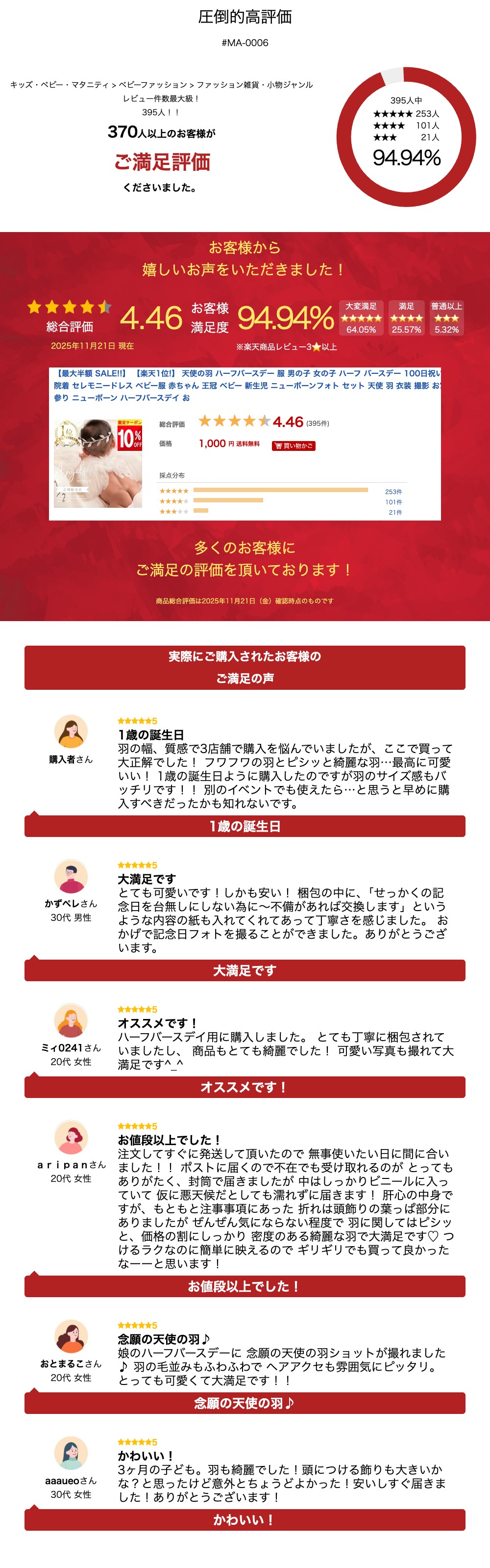 メーカー希望小売価格はメーカーサイトに基づいて掲載しています 関連商品【最大半額 SALE!!】 【楽天1位!】 ハーフバースデー 天使の羽...【最大半額 SALE!!】 【楽天1位!】 ハーフバースデー 天使の羽...【最大半額 SALE!!】 【楽天1位!】 ベビー服 男の子 女の子 ...1,280円2,280円1,000円【最大半額 SALE!!】 grattis ベビー 赤ちゃん ヘアバン...【最大半額 SALE!!】 【楽天1位!】 節分 赤ちゃん ベビー お...★ 10%OFFクーポン ★ トナカイ サンタ ベビー コスチューム ...980円1,430円2,980円★ 10%OFFクーポン ★ サンタ ベビー クリスマス キッズ 子供...★ 10%OFFクーポン ★ サンタ ベビー クリスマス キッズ 衣装...【最大半額 SALE!!】 【楽天1位!】 馬 干支 着ぐるみ コスチ...2,980円2,980円2,980円【最大半額 SALE!!】 【楽天1位!】 mocmof 節分 鬼 衣...【最大半額 SALE!!】 【楽天1位!】 金太郎 ハーフバースデー ...★ 10%OFFクーポン ★ クリスマス ベビー服 サンタ ベビー 赤...3,190円2,280円3,180円ブランド grattis グラッティス grattisとはどんなブランド? grattis(グラッティス)はスウェーデン語で「おめでとう」という意味になります。 grattisはお誕生日やイベントなどお祝いの場でお使いいただけるベビー服や、お部屋を飾る風船やガーランド、タペストリーなどを取り扱っております。 そんなお祝いの場でたくさん方の「おめでとう」に寄り添えたらというコンセプトの日本ブランドになります。 商品説明 お子様や大切な方のギフトなどに送って喜ばれるニューボーン撮影用衣装♪ ニューボーンフォト記念撮影に♪ 御出産祝いのギフトなどにも最適で喜ばれます♪ お宮参りや1カ月記念の撮影にお使い頂けます。 ご自身の赤ちゃんにはもちろん、ご友人や同僚、知人、お孫さんや姪っ子、甥っ子などへの出産祝いや初節句祝いにプレゼントとしても喜ばれるニューボーンフォト衣装でございます。 サイズ ・羽 横幅/約26cm 縦/約17cm ・ヘアバンド 頭囲/約39cm〜45cm ご注意事項 ※ご使用の機器や照明などにより、実際の色と多少異なる場合がございます。 ※多少のほつれや毛玉、汚れなどがある場合がございます。 ※お値段を抑えるために、本品は簡易包装で発送させていただきます。 関連商品 こんな商品も 該当ワード: セレモニードレス セレモニー ベビードレス 生まれたばかり 月齢フォト マンスリーフォト 100日祝い 写真 撮影 100日 百日祝い ヘアバンド 王冠 衣装 おしゃれ お洒落 オシャレ 被り物 グッズ