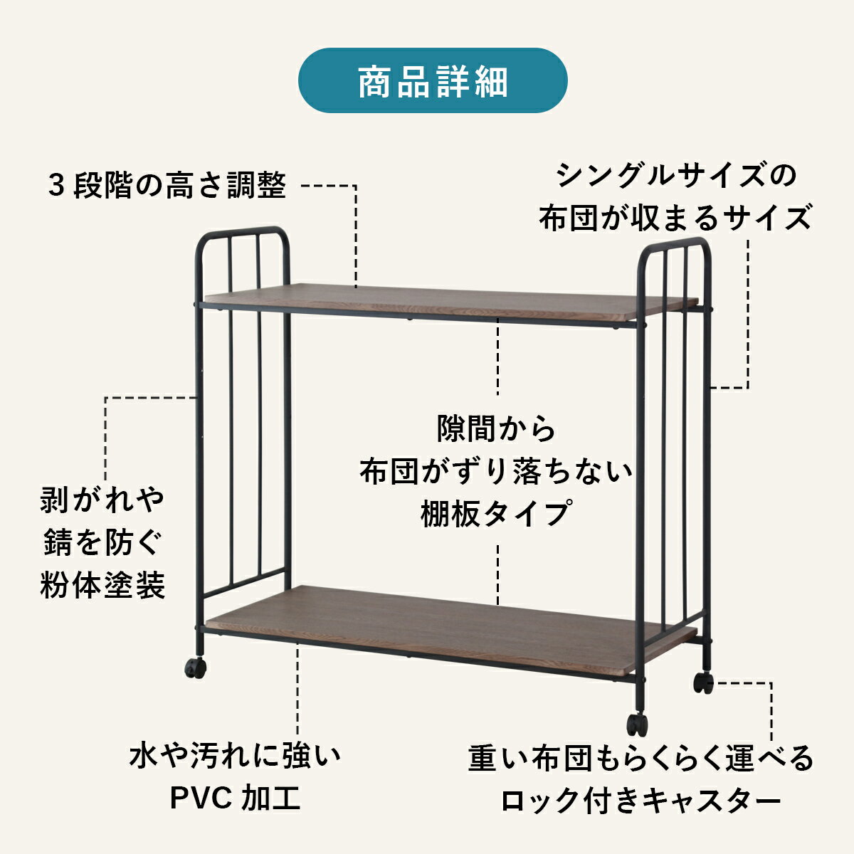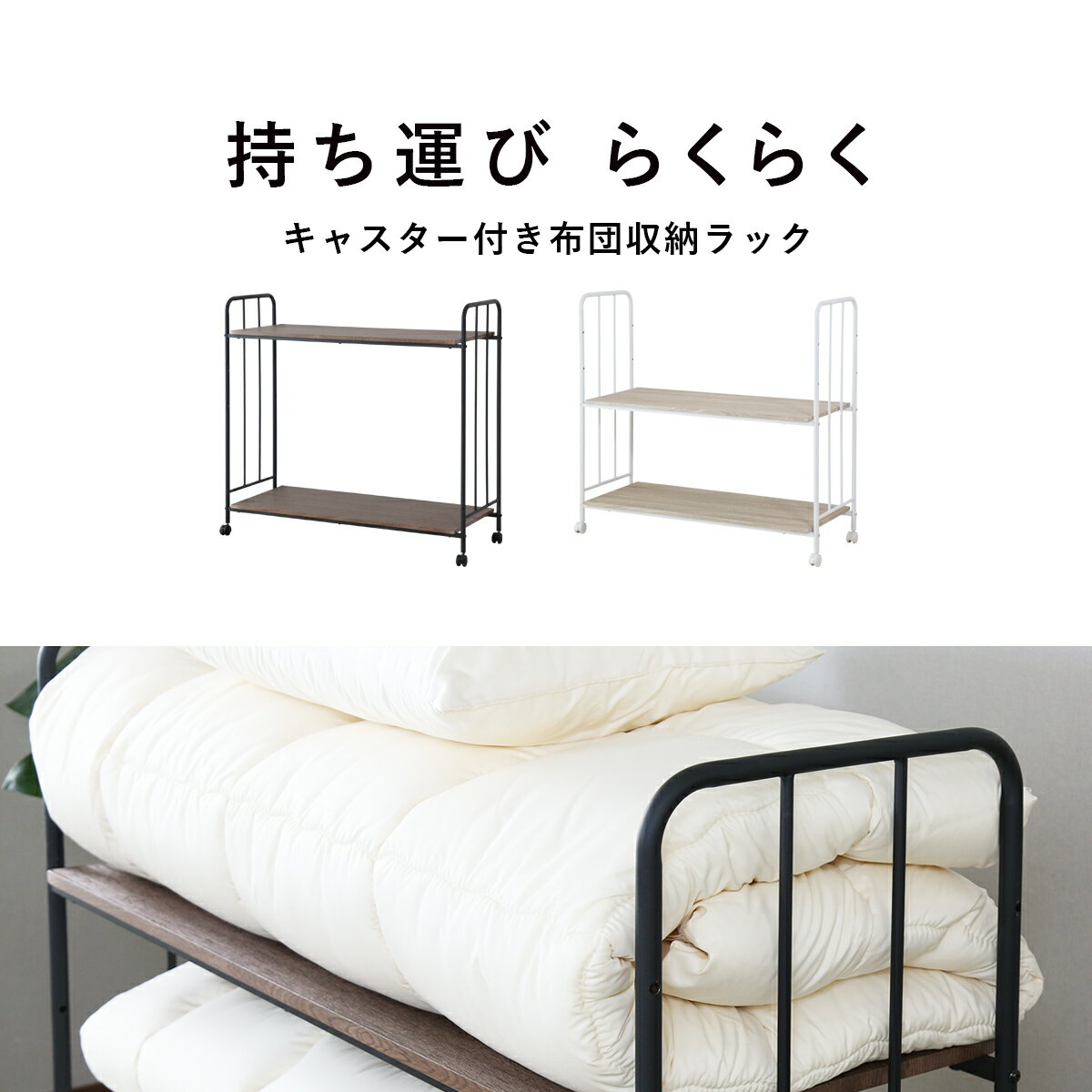 【クーポン10%off 22日00時〜25日24時】 布団ラック 布団収納ラック 3段階調整 キャスター付き 木製 布団収納 ふとん ふとん収納 布団収納棚 幅110 押し入れ収納 押入れラック 布団落下防止 ハイタイプ 耐荷重50kg 大容量 マットレス おしゃれ ボル2段 ドリス PI