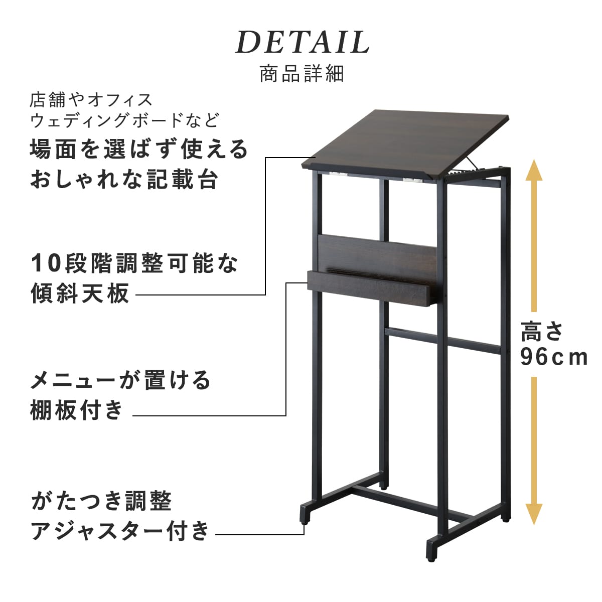 【クーポン10%off 12/6 00時〜24時】 記載台 来客用記載台 記名台 記帳台 記帳スタンド 受付カウンター 幅44 天板10段階調整 オフィス 店舗 受付 来客用 記帳 ウェイティング メニュー パンフレット アンケート 木製 スチール 入口 玄関 おしゃれ ピクル ドリス