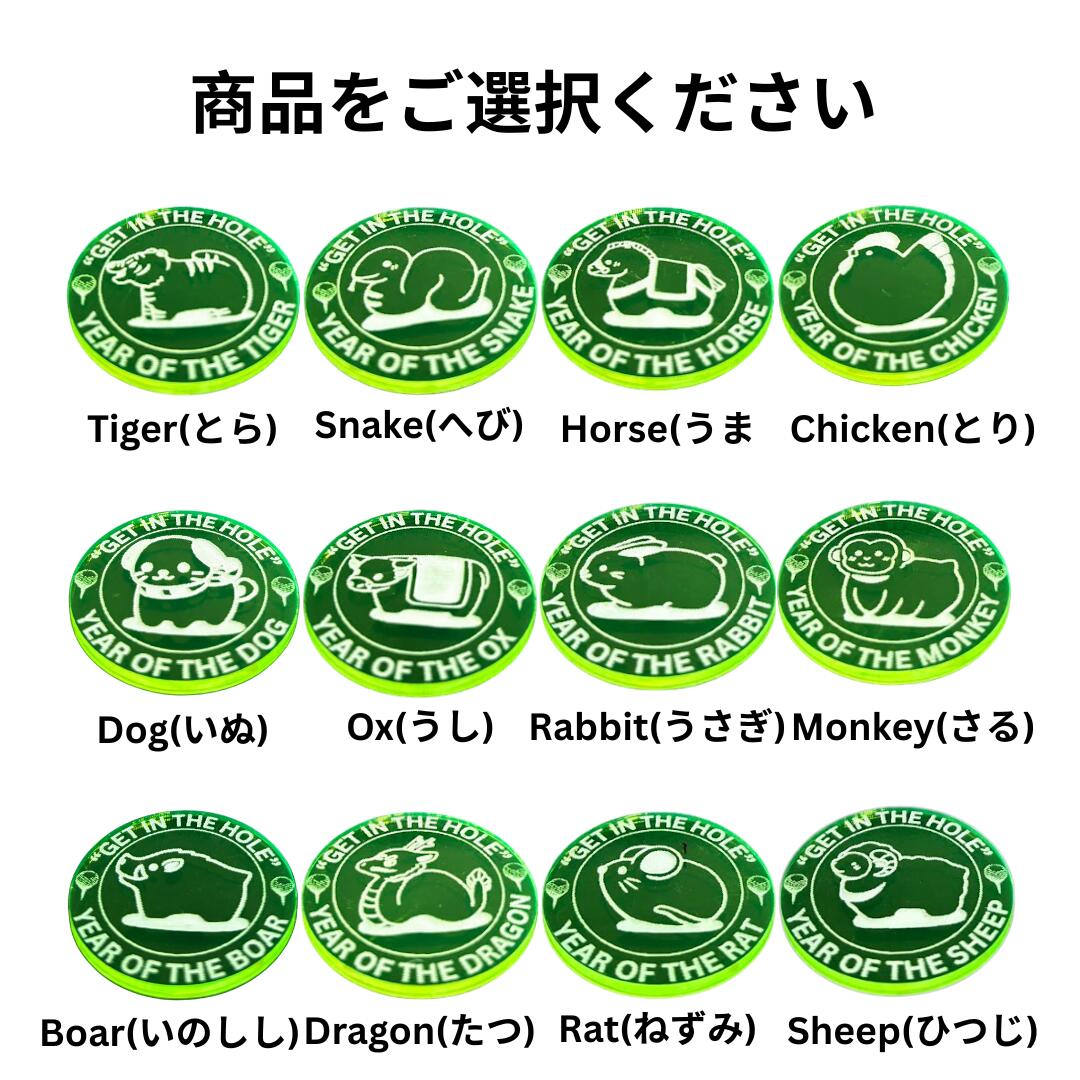 GreenLifeゴルフマーカー 蛍光 曇りや雨の日もピカッと光って見やすい 抜群の視認性能 12の干支を刻印 大事な人へのプレゼント コンペの景品にも最適