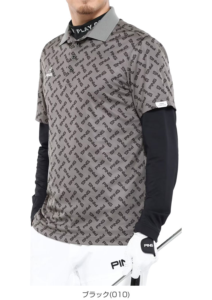 ピン メンズ ゴルフウェア パフォーマンスライン ツインレイヤード モックネック 長袖シャツ + 半袖ポロシャツ セットアイテム 621-4160209 M-LL [即納]