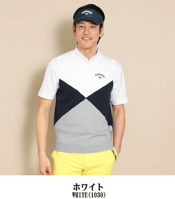 キャロウェイ アーガイル 綿タッチ Vネック ニットベスト ゴルフウェア メンズ C24119102 M-3L [即納]