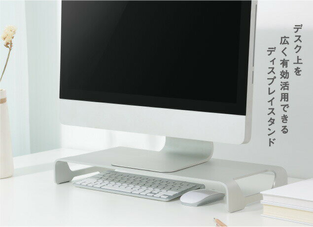 キーボードやマウスを収納できる アルミ製シンプルデザインのディスプレイ台 シンプルなデザインでどんなデスクにもマッチ 大型のディスプレイやテレビにも対応 組み立て要らずで簡単設置 外形寸法W500×D210×D63(mm) 本体重量1500g 耐荷重20kg 材質アルミニウムキーボードやマウスを収納できるディスプレイ台 ディスプレイの下のスペースを有効活用でき、キーボードやマウスなどの収納に便利です。 シンプルなデザインでどんなデスクにもマッチ アルミ製のシンプルなデザインなので、どんなデスクにもマッチし、家庭での使用からビジネス用途まで幅広い場所で使用できます。 大型のディスプレイやテレビにも対応 組み立て要らずで簡単設置 外形寸法 W500×D210×D63(mm) 本体重量 1500g 耐荷重 20kg 材質 アルミニウム ご使用上の注意 ディスプレイやテレビの重量が本製品の耐荷重以下であることを確認してから使用してください。 不安定な場所に置かないでください。 本製品を叩いたり、踏んだり、蹴ったりしないでください。 本製品を分解・改造して使用しないでください。 乳幼児の手の届く場所へ置かないでください。 水につけたり、濡らしたりしないでください。 湿気の多い場所では使わないでください。 直射日光の強いところに長時間放置しないでください。 火中に投入、加熱しないでください。 発熱体の近くで使わないでください。 製品画像の色は実際の製品の色と異なる場合があります。 記載されている会社名、製品名は各社の商標または登録商標です。 製品のデザイン、仕様は改良などにより、予告なしに変更する場合があります。 リリースに記載された製品の価格、仕様、サービス内容および企業情報などは発表日現在のものです。