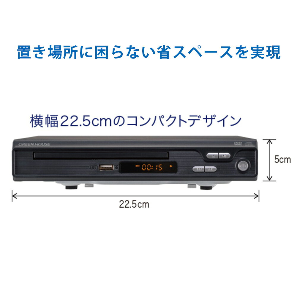 グリーンハウス DVDプレーヤー 据え置き型 シンプル HDMI端子搭載 コンパクト CPRM VRモード対応 USBメモリー再生 アップスケーリング機能 前面ディスプレイ搭載 日本語リモコン HDMIケーブル付属 GH-DVP1M-BK