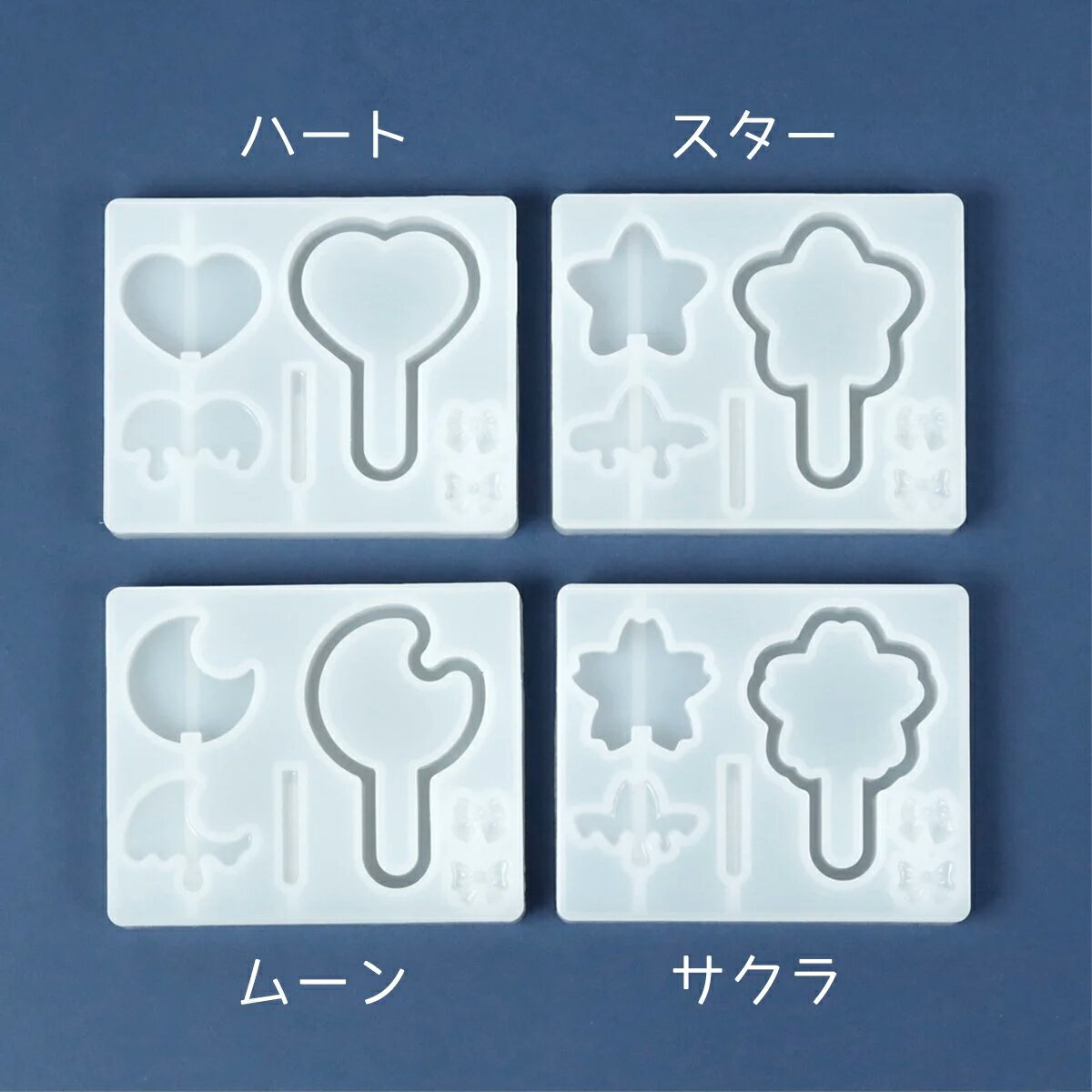 ◆商品説明◆ 外側のチョコケース部分と内側の棒付きチョコレートの部分が別々に作れてアレンジが楽しめる、ちょっと変わったシェイカーモールド♪チョコケースにチョコを入れてフィルム(20801-G)を貼れば、シェイカー作品に♪ シェイカーだけで作ったり、シンプルなロリポップチョコにしたり、作ったロリポップ自体を封入パーツにしたり。飾りパーツも作れるから、いろんなアレンジが楽しめるよ^^ チョコ部分と棒の部分が分かれているから、着色もしやすい!! 着色剤や封入パーツ、貼り付けデコパーツ次第で、ペロペロキャンディーにしたり、推し活うちわ風やキャンディ風にもアレンジできるよ◎ スター・ハート・丸・月・くま・ネコ・ウサギ・さくらの8種類から選んでね。 ◆ポイント◆ ○内側と外側を組み合わせて使用する場合、内側のパーツは高さ調整をしてください。(モールドの深さいっぱいに作ると、枠の高さより高くなってしまいはみ出してしまいます。) ◆関連商品◆ カット済みの専用フィルム♪ 商品型番:20801-G ペロペロチョコレート&ケースのカシャカシャ専用フィルム ◆スペック◆ ○数量:シリコン1個(フィルムは付属しません) ○別売りのフィルム:フリーカットフィルム(商品型番:25520-G)・専用フィルムのどちらも対応 ○液体を注入できる溝:なし ○モールドサイズ:約64×78mm ○完成サイズ:枠 ハート約50×36mm スター約53×36mm ムーン約53×34mm サクラ約52×36mm ネコ約50×34mm クマ約50×35mm ウサギ約56×34mm ラウンド約53×33mm ハートチョコレート約40×26×7mm(ハートを薄く作ったサイズ)(他のチョコレート部分はこちらのサイズを参考にしてください) ○素材:シリコン ◆注意事項◆ ○表記のサイズは目安です。実際の寸法は個々に若干異なる場合がございます。 ○生産ロットにより同じカラーでも色味の違いがある場合がございます。 ◆シェイカーモールドについて◆ ○別途フィルム(別売り)が必要です。 ※上のバナーを押すとフィルムの販売ページに移動します。 [当店で販売しているフィルム] ・フリーカットフィルム/すべてのシェイカーモールドに使用できます。 ・専用フィルム/一部商品に対応しています。専用フィルムがないモールドもございます。ご確認の上ご購入ください。 [フィルムの使い方] ・片面に保護シートがついています。レジンで貼り合わせる面には保護シートが無いほうを使います。 ・フリーカットフィルムの場合は、塞ぎたい部分に保護シートが付いた面を上にして置き、切り抜き線を書きます。 (フィルムを剥がせばペンで書いた線がなくなるので簡単です♪) ※貼り合わせる部分も考慮し、フィルムで塞ぐ穴より少し大きめに線を書き切ってください。 ※保護シートははがしてください。 ○液体を後から注入できる溝があるモールドと無いモールドがあります。 [溝ありの場合] ・封入物を入れフィルムで蓋をして貼り合わせた後、溝からスポイトで液体を入れ、レジン液で穴を塞いでください。(スポイト:17814-G) [溝なしの場合] ・液体を入れる場合、封入物を入れフィルムで蓋をして貼り合わせた後、ピンバイス等で目立たない場所にスポイト先端サイズの穴を開け、スポイトで液体を入れてください。最後にレジン液で穴を塞いでください。 ◆モールド全般の注意事項◆ ~海外生産の為どうしても避けられません~ ○やすりやコーティング剤などでカバーが出来ると判断したものについては『良品』としており、返品対象外です。 ○お買い求めやすい商品価格の維持のため、下記を考慮した販売価格となっております。何卒ご理解、ご了承のうえお買い求め下さい。 ※完成作品にくもりのようなものができてしまうことがあります。 ※完成作品の表面にキズ、擦りキズ、線、スジ、うろこ模様などができてしまうものもあります。 ※完成作品に影響が無い部分の汚れ、多少のサイズの誤差等は良品の範囲内とさせていただきます。 ※多少の歪み、厚みの高低差がある場合がございます。 ※シリコン型は消耗品です。使用回数を重ねる毎に劣化していきます。消耗具合は使用方法などにより異なるようです。 ※使用するレジン液や着色剤、ライトの種類によって、モールドの傷みが早まる可能性がございます。 ※型の色やサイズ、硬さは入荷ロットごとに異なる場合がございます。作成出来る形が同じ場合は同一商品扱いとさせて頂きます。 [表面をつるつるに仕上げるには] ・キズ、線、スジ、うろこ模様などがある面に薄くレジン液を塗り再度硬化させることで表面がつるつるになります。キズなどがない場合も仕上げに表面をレジンコーティングすることで、作品がより美しく仕上がります。コーティング専用レジン液のまさるコート(商品型番:21796-G)やフィニッシュプログロッシー(商品型番:15211-O)もおすすめです。 ★ゆうパケット配送OK (ただし、代金引換ご希望の方、ゆうパケット配送NGの商品が含まれる場合はゆうパックでのお届けとなります。)