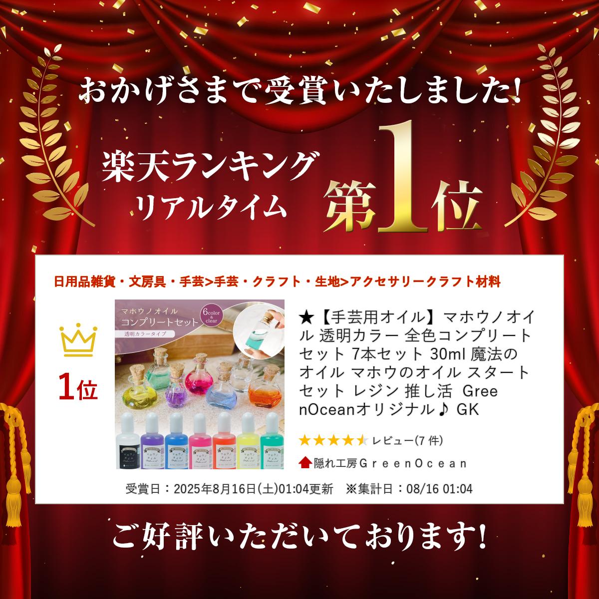 【1のつく日P5倍】 ★【手芸用オイル】マホウノオイル 透明カラー 全色コンプリートセット 7本セット 30ml 魔法のオイル マホウのオイル スタートセット レジン 推し活 GreenOceanオリジナル♪ GK