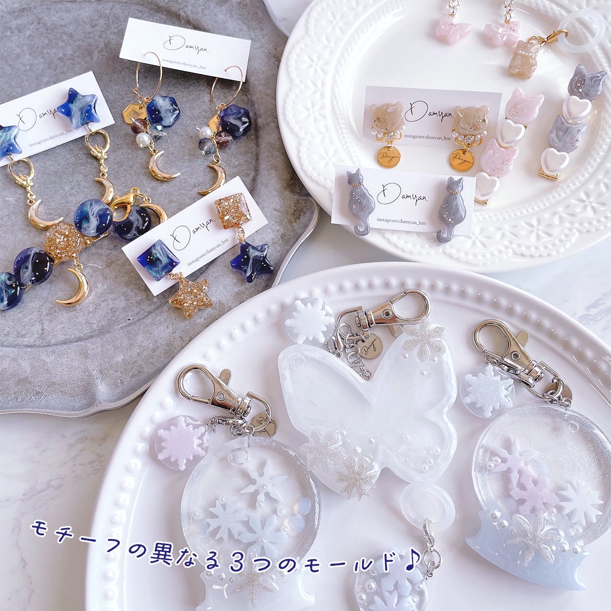 ◆商品説明◆モチーフの異なる3タイプのシリコンモールド♪どのモールドも20種類のデザインが作れるから、いろいろなアレンジが楽しめるよ。Aタイプは丸やひし形、月や星、ハートなどのシンプルな形。Bタイプはねこ、くま、イルカなどアニマルをモチーフとしたモールドだよ。Cタイプは多種類の雪の結晶やお花が作れるから、クリスマスにもピッタリ。アクセサリーやキーホルダー制作はもちろん、貼り付けパーツにしても可愛いよ♪◆関連商品◆見本作品に使用しました♪商品型番:13974-G スノードームのシェイカーモールド商品型番:27829-G 三日月チャーム 10個セット商品型番:27702-G アンブレラマーカー◆スペック◆○数量:1個○モールドサイズ:約85×95×5mm○完成サイズ:画像参照○素材:シリコン◆注意事項◆○表記のサイズは目安です。実際の寸法は個々に若干異なる場合がございます。○生産ロットにより同じカラーでも色味の違いがある場合がございます。◆モールド全般の注意事項◆~海外生産の為どうしても避けられません~○やすりやコーティング剤などでカバーが出来ると判断したものについては『良品』としており、返品対象外です。○お買い求めやすい商品価格の維持のため、下記を考慮した販売価格となっております。何卒ご理解、ご了承のうえお買い求め下さい。※完成作品にくもりのようなものができてしまうことがあります。※完成作品の表面にキズ、擦りキズ、線、スジ、うろこ模様などができてしまうものもあります。※完成作品に影響が無い部分の汚れ、多少のサイズの誤差等は良品の範囲内とさせていただきます。※多少の歪み、厚みの高低差がある場合がございます。※シリコン型は消耗品です。使用回数を重ねる毎に劣化していきます。消耗具合は使用方法などにより異なるようです。※使用するレジン液や着色剤、ライトの種類によって、モールドの傷みが早まる可能性がございます。※型の色やサイズ、硬さは入荷ロットごとに異なる場合がございます。作成出来る形が同じ場合は同一商品扱いとさせて頂きます。[表面をつるつるに仕上げるには]・キズ、線、スジ、うろこ模様などがある面に薄くレジン液を塗り再度硬化させることで表面がつるつるになります。キズなどがない場合も仕上げに表面をレジンコーティングすることで、作品がより美しく仕上がります。コーティング専用レジン液のまさるコート(商品型番:21796-G)やフィニッシュプログロッシー(商品型番:15211-O)もおすすめです。★ゆうパケット配送OK(ただし、代金引換ご希望の方、ゆうパケット配送NGの商品が含まれる場合はゆうパックでのお届けとなります。)