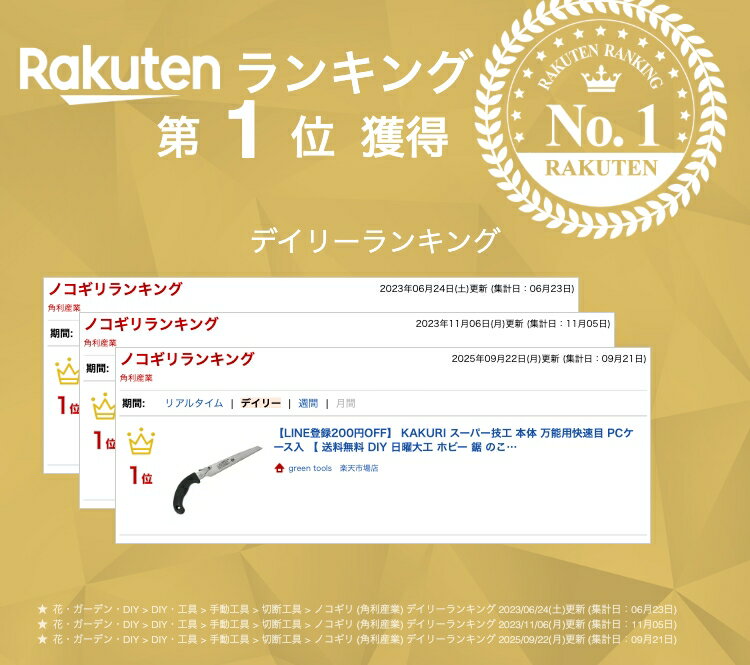 サイズ全長:350mm 刃長:210mm 刃厚:0.6mm重量?本体:180g材質刃:炭素工具鋼 柄:スチール、PA(強化ナイロン)、TPR(合成ゴム) ケース:ポリプロピレン付属品刃先収納用プラスチックケース 関連商品KAKURI スーパー技工 本体 竹用 PCケース入 【 送料無料 D...KAKURI スーパー技工 本体 小枝剪定用 PCケース入 【 送料無...KAKURI スーパー技工 本体 塩ビ・アクリル用 PCケース入 【 ...2,080円2,080円2,080円KAKURI スーパー技工 本体 合板・コンパネ用 PCケース入 【 ...KAKURI スーパー技工 本体 一般木材用 PCケース入 【 送料無...KAKURI 木サヤ付剪定鋸 ( 上製白柄白サヤ ) 240mm 【 ...2,080円2,080円3,380円KAKURI スーパー技工 専用 替刃 塩ビ・アクリル用 【 メール便...KAKURI スーパー技工 替刃 万能用快速目 【 メール便 DIY ...KAKURI スーパー技工 専用 替刃 一般木材用 【 メール便 DI...798円798円798円角材・板材・ベニアの切断に使えるインパルス方式の刃先焼入れ(衝撃焼入)で切れ味が長期にわたり持続します。便利で経済的な替刃式のこぎり■用途に合わせて刃をチェンジ 専用替刃(別売)を付け替えることで様々な素材を切断加工できます。刃を交換するだけで良いので材料に合わせてのこぎりを買いそろえる必要がなく、経済的です。■材料に合わせた6種類の替刃 各素材用の6種類の専用替刃をラインナップ。木材・合板・塩ビ・竹などの様々な素材に対応可能。■便利な収納ケース付き 鋸刃を保護する専用ケースが付属。刃の傷みやケガなどを防止できる。ケースには本体の他、替刃を3枚収納することができます。 【関連キーワード】 DIY 日曜大工 ホビー 鋸 のこぎり ノコギリ 替刃式 本体 木材 合板 コンパネ 塩ビ アクリル 小枝 剪定 KAKURI アウトドア キャンプ キャンパー ソロキャン 万能 ステンレス 粗ゴミ 荒ゴミ 粗大ゴミ 鉄 木 刃 波型 スムーズ コンパクト いろいろ切れる 握りやすい 分別 解体 断捨離 片付け グッズ