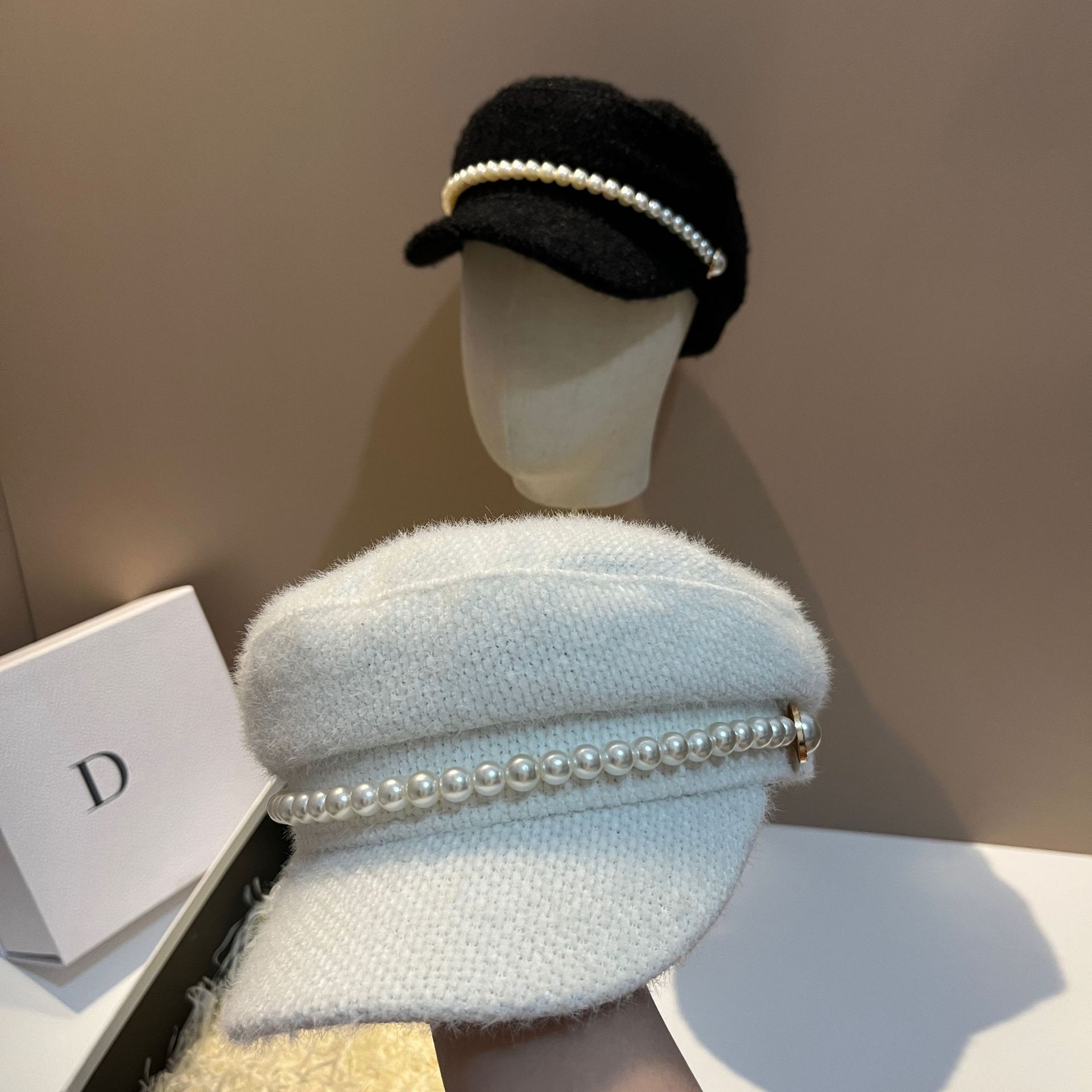 帽子 キャスケット パール デザイン レディース きれいめ かわいい おしゃれ 上品 可愛い ブラック ホワイト キャメル 黒 白 茶 ハット キャップ パールビーズ 飾り付き帽子 エレガント 女性 大人 華やか ぼうし ゴージャス 秋 冬 韓国ファッション [J] [K](T)