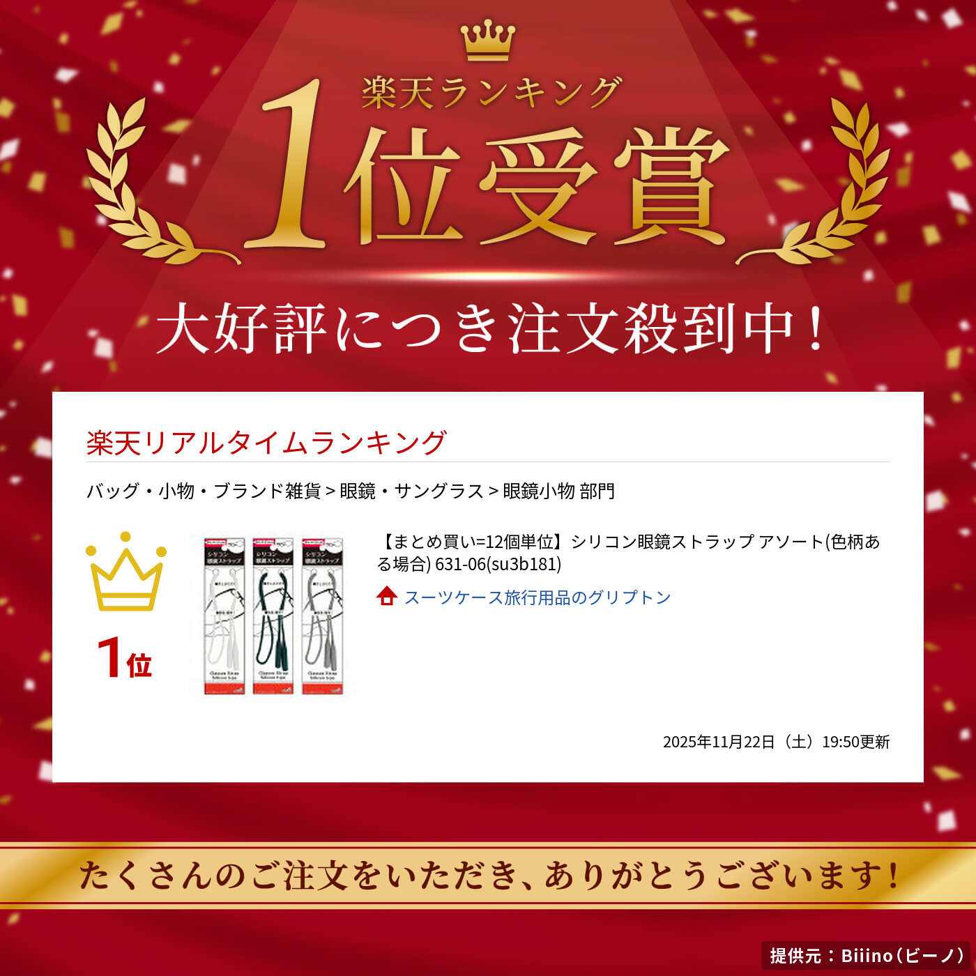 激安まとめ買い商品!テンプルに差し込むだけ ●こちらのページは、まとめ買い専用ページです。下記条件を必ずご確認下さい。 ●在庫は常に流動的であるため、事前に在庫を確認していた場合でも、ご注文時には欠品・廃番となっている可能性もございます。 品番 631-06 仕様 サイズ(約)/55cm 材質 シリコン 製造国 中国 納品目安 取り寄せ品につき、営業日の11時までのご注文で3〜5営業日後発送(在庫がある場合)。 ※振込でのお支払いは、ご入金確認後となります。 ※土日祝はお休みです。 特記