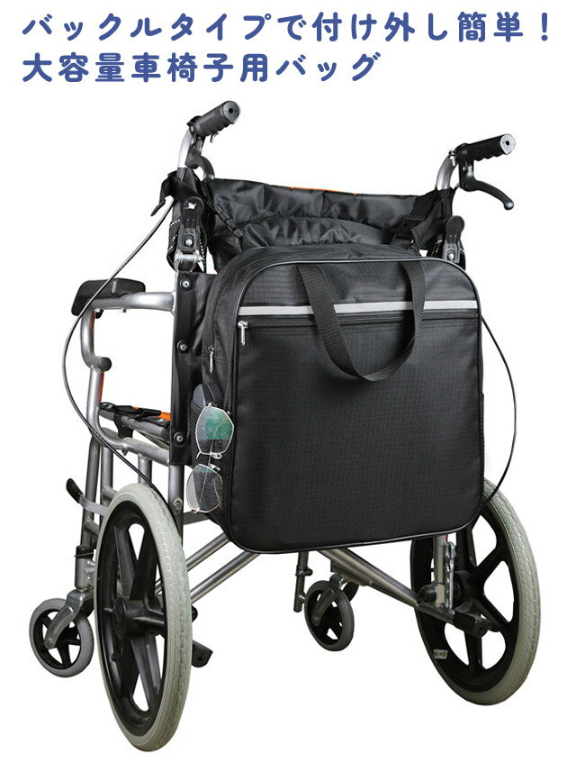 【送料無料】GPT 車椅子用 バッグ かばん 収納 背面 吊り下げ 鞄 大容量 大きめ ビッグ 車いす 車イス シルバーカー 介護 便利 小物収納 反射テープ 反射板 付き (gu1b760)