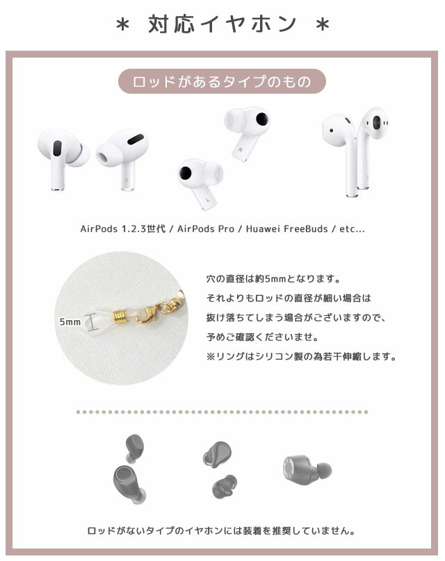 【検索ワード】ワイヤレス/イヤホン/イヤフォン/AirPods/エアーポッズ/AirPods Pro/エアーポッズプロ/1世代/2世代/3世代/ブルートゥース/Bluetooth/Huawei/ファーウェイ/眼鏡/メガネ/めがね/サングラス/メガネホルダー/メガネストラップ/メガネチェーン/サングラスホルダー/グラスコード/マスク/マスクホルダー/マスクストラップ/紐/ヒモ/イヤーフック/首かけ/ホルダー/ケーブル/外れ防止/落とさない/なくさない/落ちにくい/首から下げる/ぶら下げ/吊るす/旅行/トラベル/運動/ジョギング/ウォーキング/ジム/マラソン/スポーツ/ランニング/通話/通勤/通学/散歩/音楽/テレワーク/リモートワーク/在宅/オンライン飲み会/イベント/祭り/フェス/フェスコーデ/コンサート/ライブ/ライブコーデ/ダンス/クラブ/音楽好き/ミュージック/misic/アウトドア/軽量/軽い/丈夫/便利/かわいい/おしゃれ/シンプル/レディース/女性/メンズ/男性/ユニセックス/着脱簡単/左右独立/サイクリング/自転車/両耳/片耳/携帯用/便利グッズ/プチプラ/ネックレス/ペンダント/ファッション/レディースアクセサリー/メンズアクセサリー/プレゼント/ギフト/母の日/父の日/敬老の日/子供の日/子どもの日/こどもの日/クリスマス/誕生日/バースデー/バレンタインデー/ホワイトデー/プチギフト/お見舞い/ポイント消化/ゴールド/金色/シルバー/銀色/星/ハート/モチーフ/ビーズ/韓国/韓国風/韓国雑貨/【RCP】ワイヤレスイヤホンの落下、紛失防止に! イヤホンを差し込むだけの簡単装着イヤホンホルダー。 眼鏡やサングラスホルダーとしてもお使いいただけます。 さりげないハートとスターの飾りがおしゃれ♪ 品番 gu1b788-mail 商品サイズ(約) 全長66cm(ホルダー部分を含む) 重量(約) 4g 対応イヤホン AirPods 1世代/2世代/3世代、AirPods Pro、Huawei FreeBuds などイヤホンにロッドがあるタイプのもの ※ロッドがないタイプのイヤホンには装着を推奨しません。 ※ホルダー部分の穴の直径は約5mmとなります。それよりもロッドの直径が細い場合は、抜け落ちてしまう場合がございますので、予めご確認くださいませ。 素材 金属、シリコン 製造国 中国 ご注意 ※イヤホンは付属しません。 ※海外インポート製品の為入荷時期によりカラー、風合い、パーツなどの相違がある場合がございます。 ※使用・未使用関わらず、お届け後一定期間を過ぎた場合の保障は致しかねます。念の為ご使用前に初期不良がないか重々ご確認の上、万が一問題のある場合には、お届け後8日以内にご相談下さいませ。(使用に差し支えのない範囲の傷・汚れは初期不良対応の対象外となります。) 納品目安 営業日(土日祝除く)の15時までのご注文は即日発送致します(在庫ある場合)。 ※振込でのお支払いは、ご入金確認後となります。 ※土日祝はお休みです。 配送方法(送料) メール便限定です。(条件付!日本全国送料無料) ※条件とは?