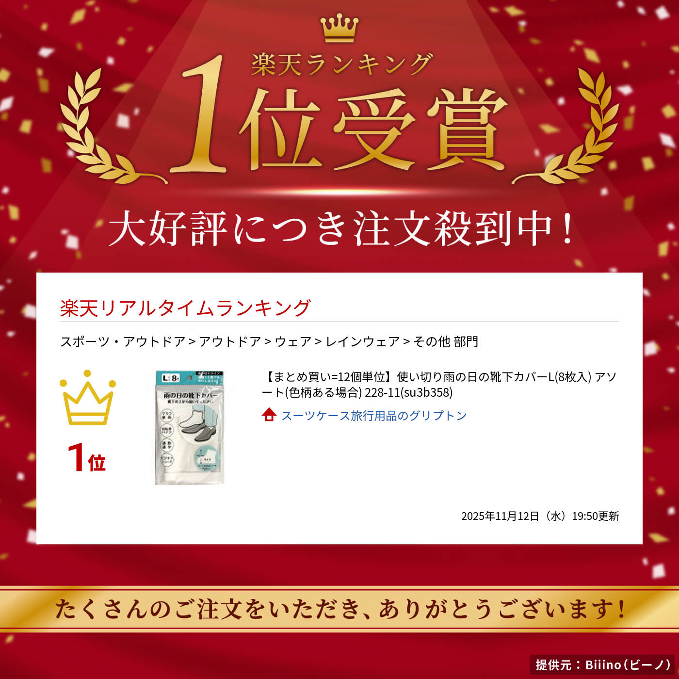 【まとめ買い=12個単位】使い切り雨の日の靴下カバーL(8枚入) アソート(色柄ある場合) 228-11(su3b358)