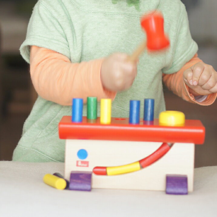 ●●●大工さん●●● ブナ・カエデの木を使ったカラフルな叩く木のおもちゃです。 叩くおもちゃの中でも群を抜くおもしろさ。 あれ?不思議不思議!? 黄色の穴からハンマーでたたいてペグを入れたら横の穴からペグが出てきたよ。 どうしてかな?入れたのと違う色も出てくるよ。そんな不思議に出会えるのもこのおもちゃに夢中になる理由です。 色を覚えるのにもぴったり。繰り返して遊ぶのがおもしろい♪ 触って・持って・はめてみる!夢中になって遊んじゃう! 安全性をクリアしているので、子供に与えるおもちゃとして安心できます。 ・本体サイズ:22×10×h11cm/ハンマー・ペグ10本 ・対象年齢:1歳頃〜 ・製造国:ドイツ 管理ID「#5*brnc64423」 ニック社 (NIC) ・ヴァルダーブランドの製造。 2006年に117年の歴史を閉じたドイツ・ヴァルダー社が生み出したおもちゃを引き継ぎ、忠実に作り出しています。特徴的なデザインとカラーリングが魅力です。木材はブナ材やカエデ材を使用しています。 ・CEマーク CEマークとは、ヨーロッパの製造物製造基準に適合していることを示します。玩具についていえば、大きさ、形態、塗料、強度などについて詳細な規則があります。ニック社の商品はこの基準をクリアしています。 ニック社のおもちゃは、ドイツが誇る確かな知育玩具です。 (ブラザージョルダン社より引用、画像提供)