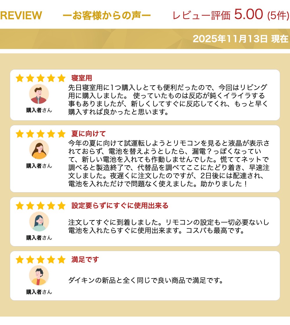 商品情報商品名互換ダイキンエアコンリモコン(DAIKIN ARC446A1 専用 (1673627))サイズ13cm × 5.3cm × 2cm重量約62グラム商品説明設定不要ですぐ使える 代用リモコンダイキン エアコン ARC446A1 専用 (1673627)ダイキン製エアコンARC446A1用の互換リモコンです。面倒な設定は不要、単4電池2本(別売)を入れるだけですぐご使用いただけます。純正リモコンと同等の機能性を備えておりますので違和感なくご使用いただけます。※機種によっては当リモコンに無いボタンがある場合もございます。対応一覧AN22GKS-W,AN22GMNS-W,AN22GNBS-W,AN22GNS-W,AN22GNSK-W,AN22GUS-W,AN25GKS-W,AN25GMNS-W,AN25GNBS-W,AN25GNS-W,AN25GNSK-W,AN25GUS-W,AN28GKS-W,AN28GMNS-W,AN28GNBS-W,AN28GNS-W,AN28GNSK-W,AN28GUS-W,AN36GKS-W,AN36GMNS-W,AN36GNS-W,AN36GNSK-W,AN40GKP-W,AN40GMNP-W,AN40GNBP-W,AN40GNP-W,AN40GNPK-W,AN40GPP-W,AN40GUP-W,AN50GKP-W,AN50GMNP-W,AN50GNP-W,AN50GNPK-W,AN50GPP-W,ANC22GNS-W,ANC25GNS-W,ANC28GNS-W,ANC40GNP-W などご確認事項機種によっては当リモコンに無いボタンがある場合もございます。関連ワードエアコンリモコン クーラーリモコン 暖房リモコン DAIKIN ダイキンキーワードエアコンリモコン商品保証期間30日間保証対象商品関連商品ダイキン エアコン リモコン ARC468A3 代替品 互換リモコン ...ダイキン エアコン リモコン ARC478A30 代替品 互換リモコン...ダイキン エアコン リモコン ARC446A4 代替品 互換リモコン ...1,590円1,780円1,390円ダイキン エアコン リモコン ARC446A3 代替品 互換リモコン ...ダイキン エアコン リモコン ARC446A2 代替品 互換リモコン ...\本日最大50%OFFクーポン配布中/レディース ベルト 本革 穴なし...1,580円1,590円1,580円イヤーマフ 折りたたみ 耳当て コンパクト 耳あて 防寒 メンズ 暴風...クリスタルチューナー 4096hz 音叉 【水晶+1本プレゼント!!】...肩サポーター 五十肩 対策 改善 コットン 素材 緩和 防止 左右3サ...1,680円1,520円1,640円ゴルフ ベルト メンズ 穴 なし 高級 本革 無段階 オートロック ス...レディース イアーマフ 防寒 イヤーマフ 防寒 耳当て レディース 子...ゴルフ ベルト メンズ 高級 本革 【専用穴あけポンチプレゼント】メン...1,720円1,680円1,680円ダイキン エアコン リモコン ARC446A1 代替品 互換リモコン DAIKIN 1673627 設定不要 簡単 汎用 ARC446A1 エアコンリモコン 互換品 5