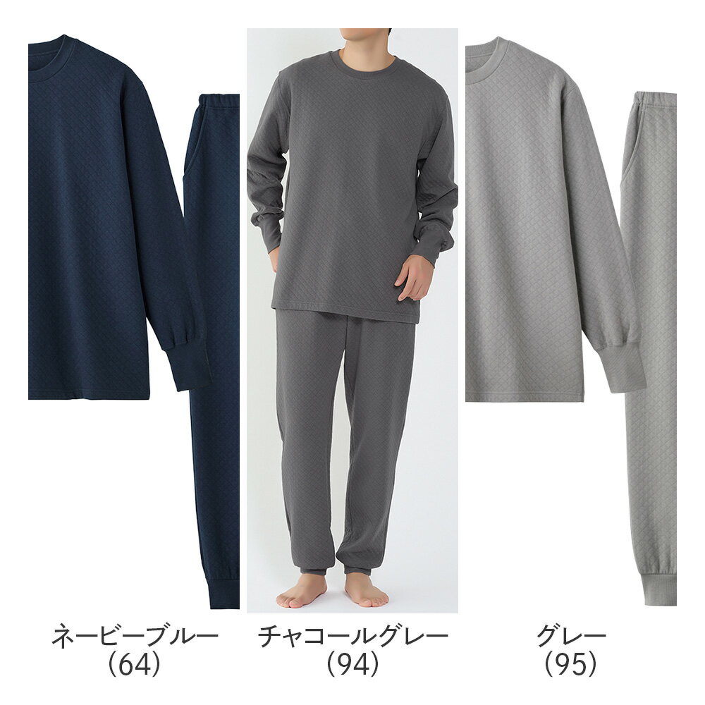 グンゼ ファイヤーアセドロン メンズ 紳士 ルームウェア スウェット 上下セット 長袖 綿混 キルト 吸湿発熱 保温 ムレ対策 秋冬 GUNZE S M L LL SG4625