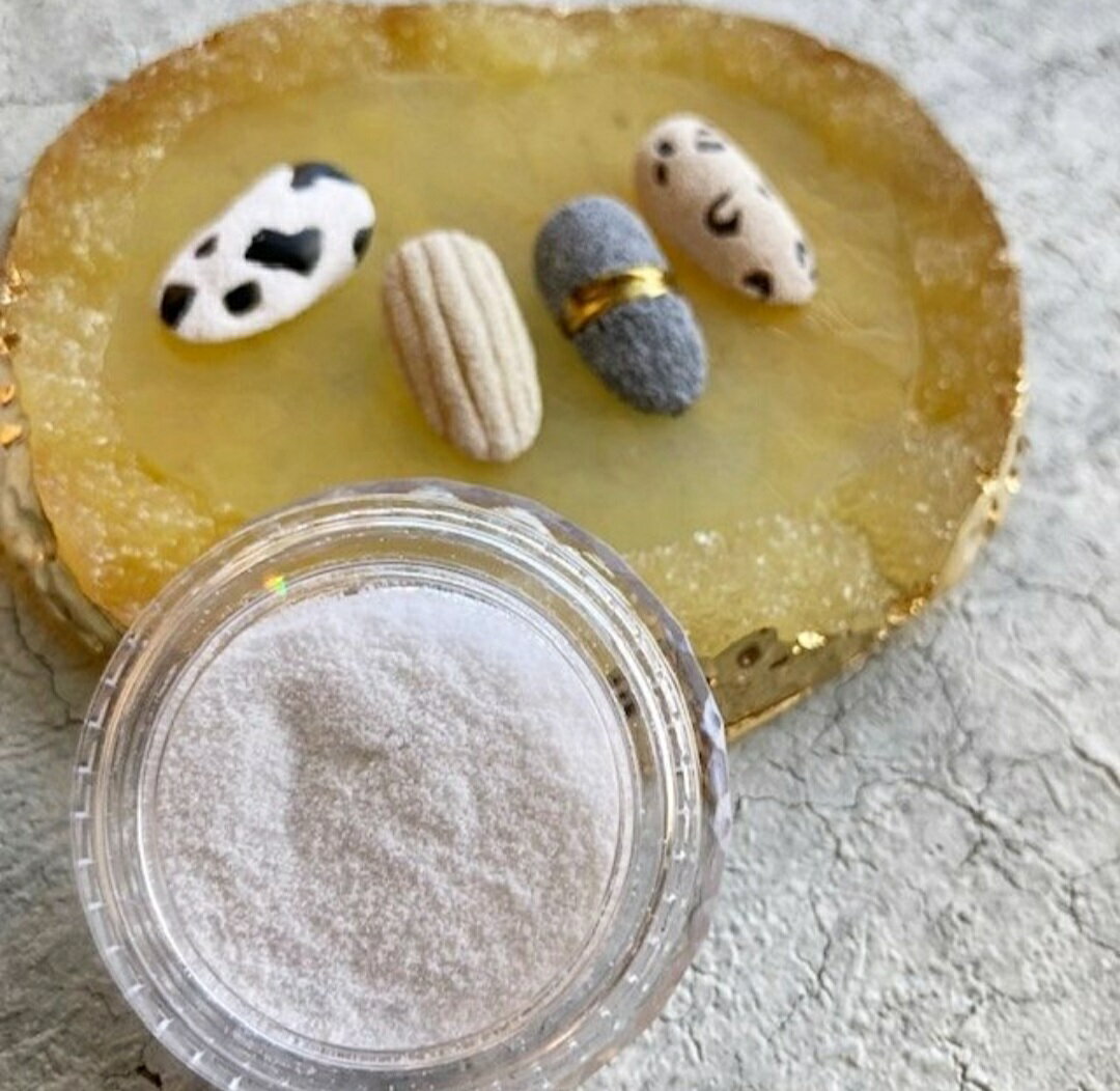 シュガーパウダー ボア とてもキメの細かな粒子です♪ 工夫次第で可愛いアートをお楽しみ頂けます。 ネイルやレジンやアクセサリーに。 使用方法 カラージェルを塗り硬化しノンワイプトップを硬化してもこもこさせたいデザイン箇所に同色のカラージェルをのせ硬化せずパウダーを振りかけた後に硬化して余分なパウダーをブラシで余分な粉をはらい完成です♪ 商品詳細 内容量:1g 注意事項 商品の品質には万全をきしておりますが輸送中や製造にムラや細かい傷が入っている事が御座います。 商品ページの画像につきましてお使いのモニターにより若干色味が違ってしまう事が御座います。 ・お知らせ:他店舗でも販売を致しておりますので 万が一欠品及び発送にお時間を頂戴致します場合はお客様に当店から改めてご連絡させて頂きます。