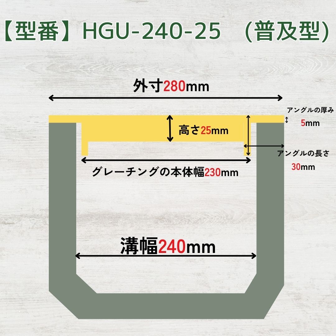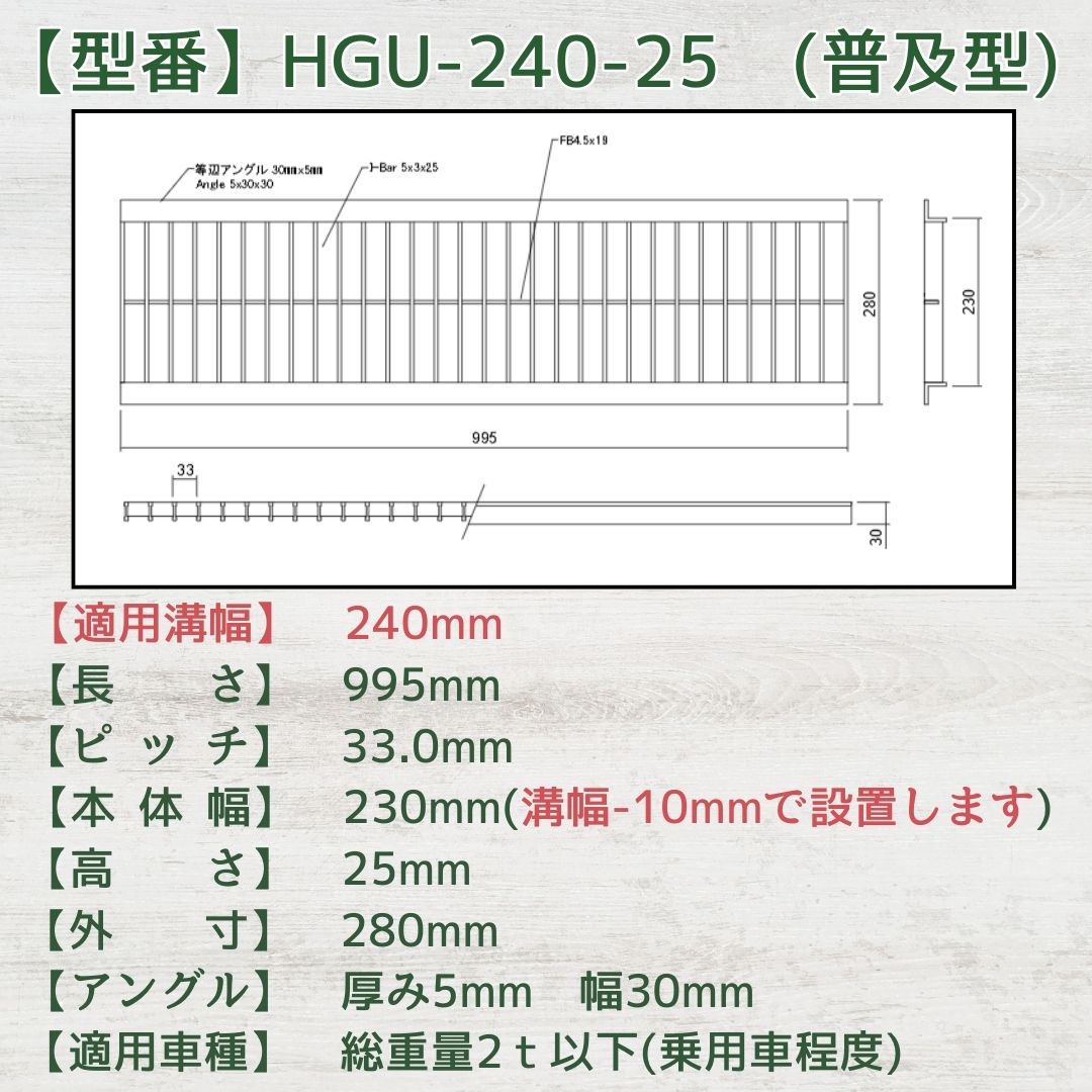 【ランキング受賞!】 グレーチング U字溝 HGU-240-25 溝幅240mm用 乗用車荷重 規格 T-2 溝 蓋 側溝 普及型 並目 法山本店