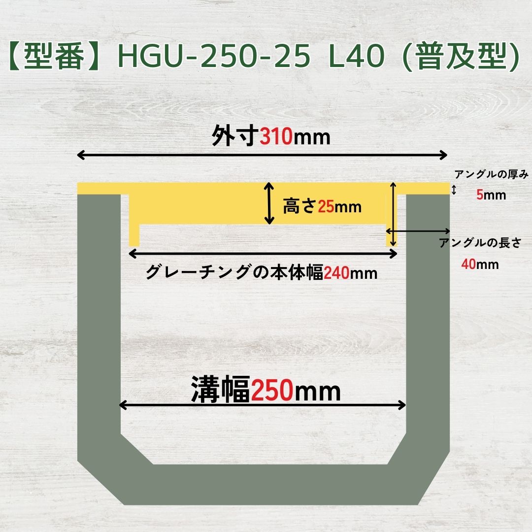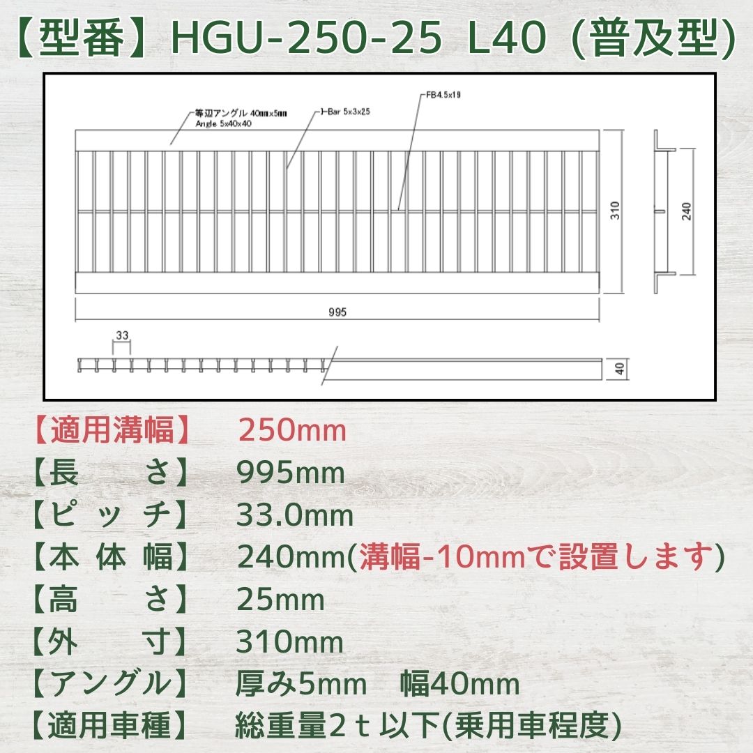 【ランキング受賞!】 グレーチング U字溝 HGU-250-25L40 溝幅250mm用 乗用車荷重 規格 T-2 溝 蓋 側溝 普及型 並目 法山本店