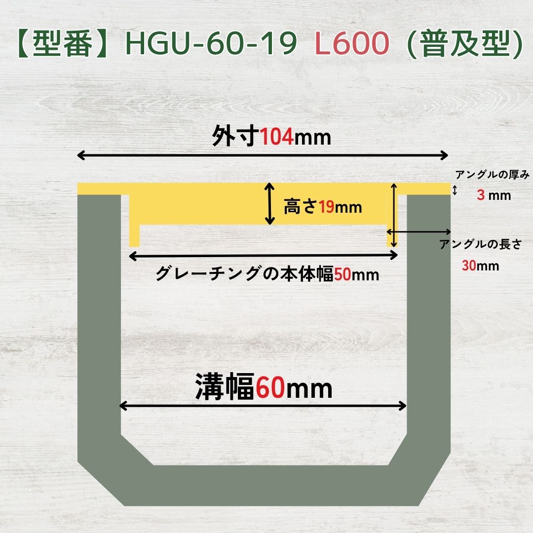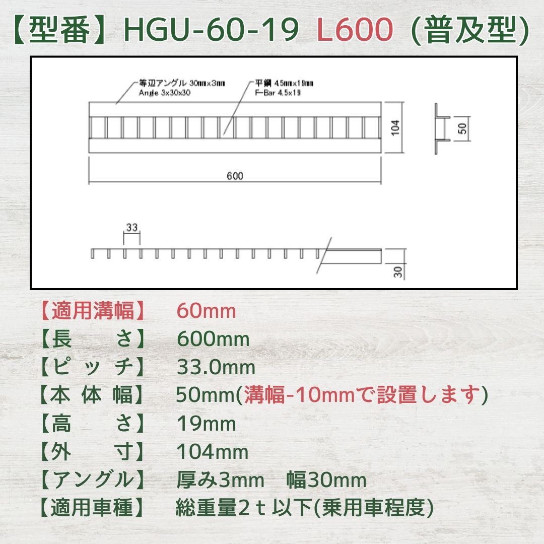 グレーチング U字溝 HGU-60-19L600 溝幅60mm用 乗用車荷重 規格 T-2 溝 蓋 側溝 普及型 並目 L600 法山本店