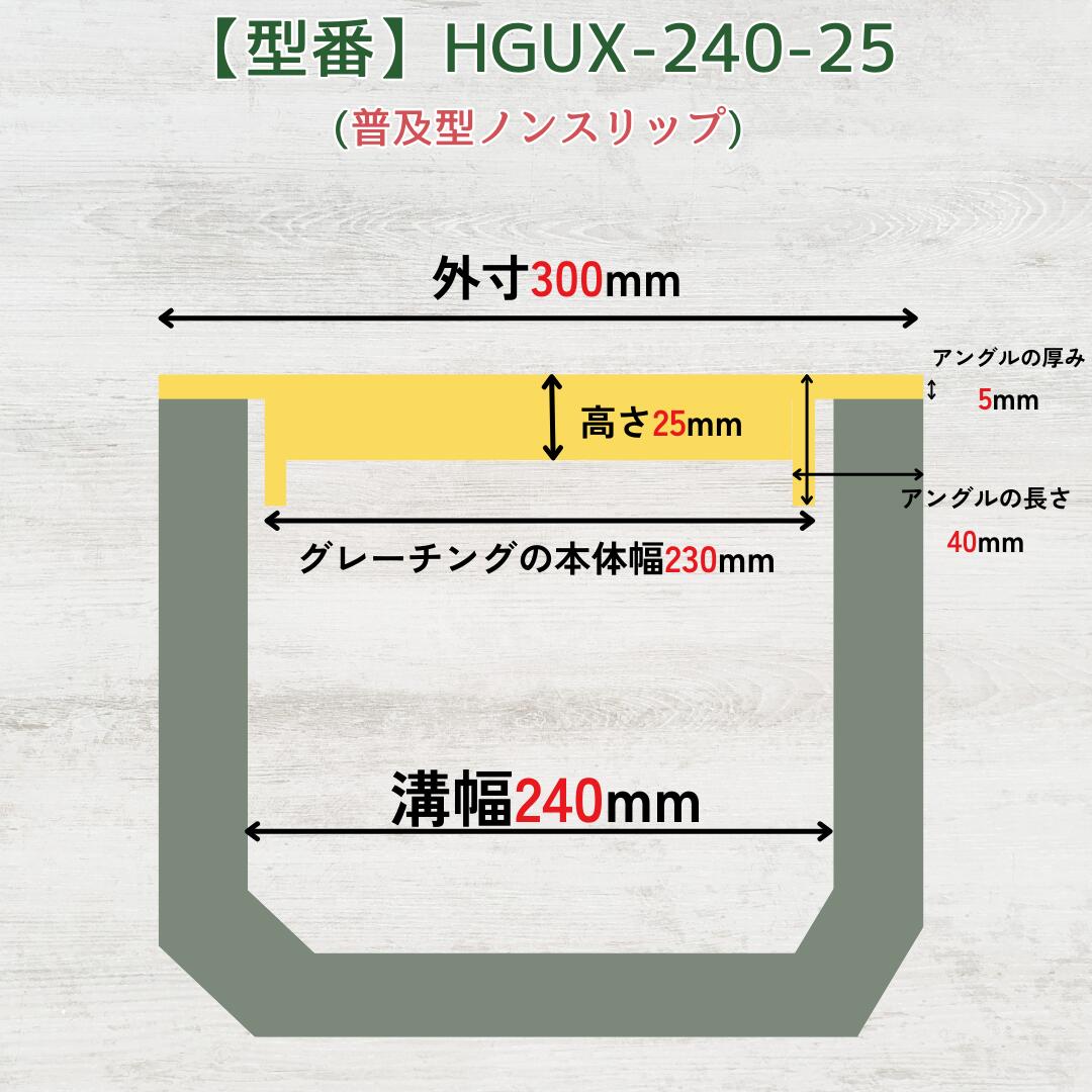 ノンスリップ型 グレーチング U字溝 HGUX-240-25 溝幅240mm用 乗用車荷重 規格 T-2 溝 蓋 側溝 滑り止め 普及型 並目 法山本店
