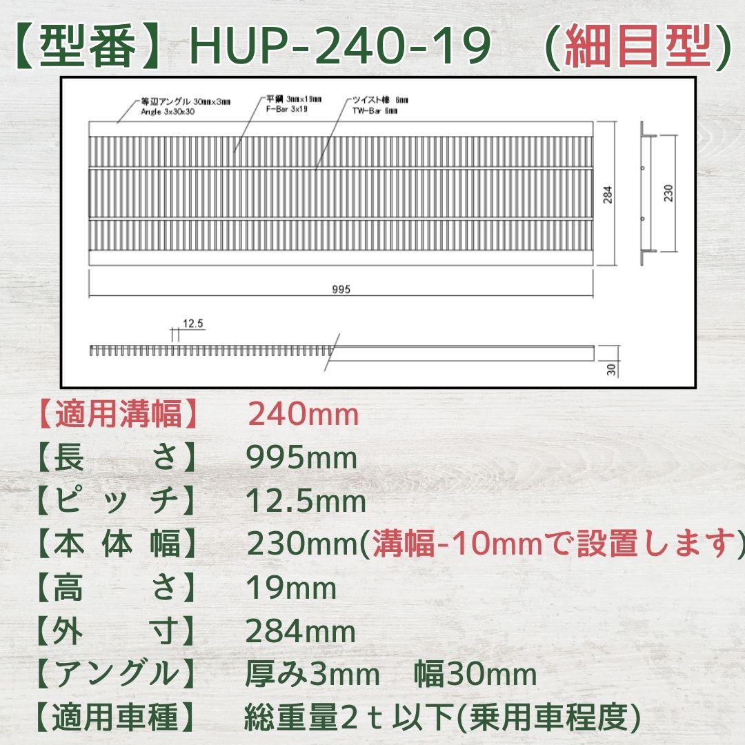 【ランキング受賞!】 【ランキング受賞】 細目型グレーチング U字溝 HUP240-19 溝幅240mm用 乗用車荷重 規格 T-2 溝 蓋 側溝 細目 法山本店