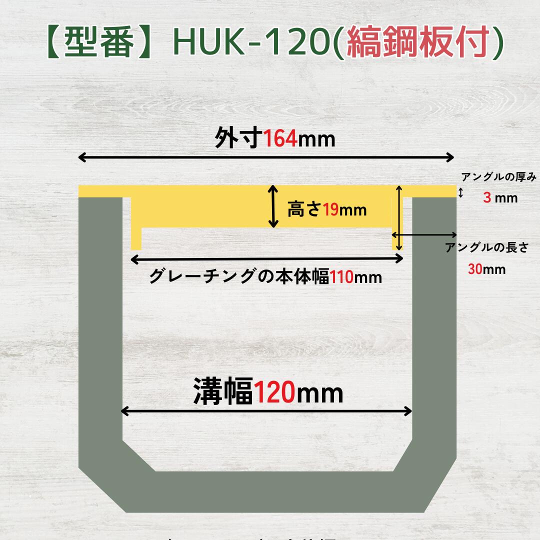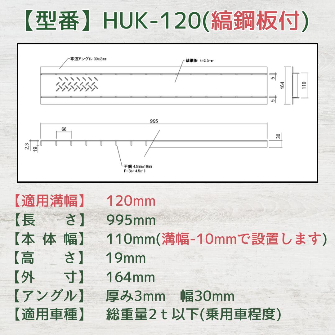 縞鋼板付グレーチング U字溝 HUK-120 溝幅120mm用 乗用車荷重 T-2 規格 溝 蓋 側溝 法山本店