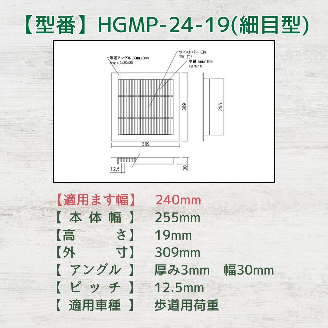 細目型溜ます用グレーチング つば付 HGMP-24-19 ます幅240mm用 歩道用荷重 規格 溝 蓋 溜枡 細目 法山本店