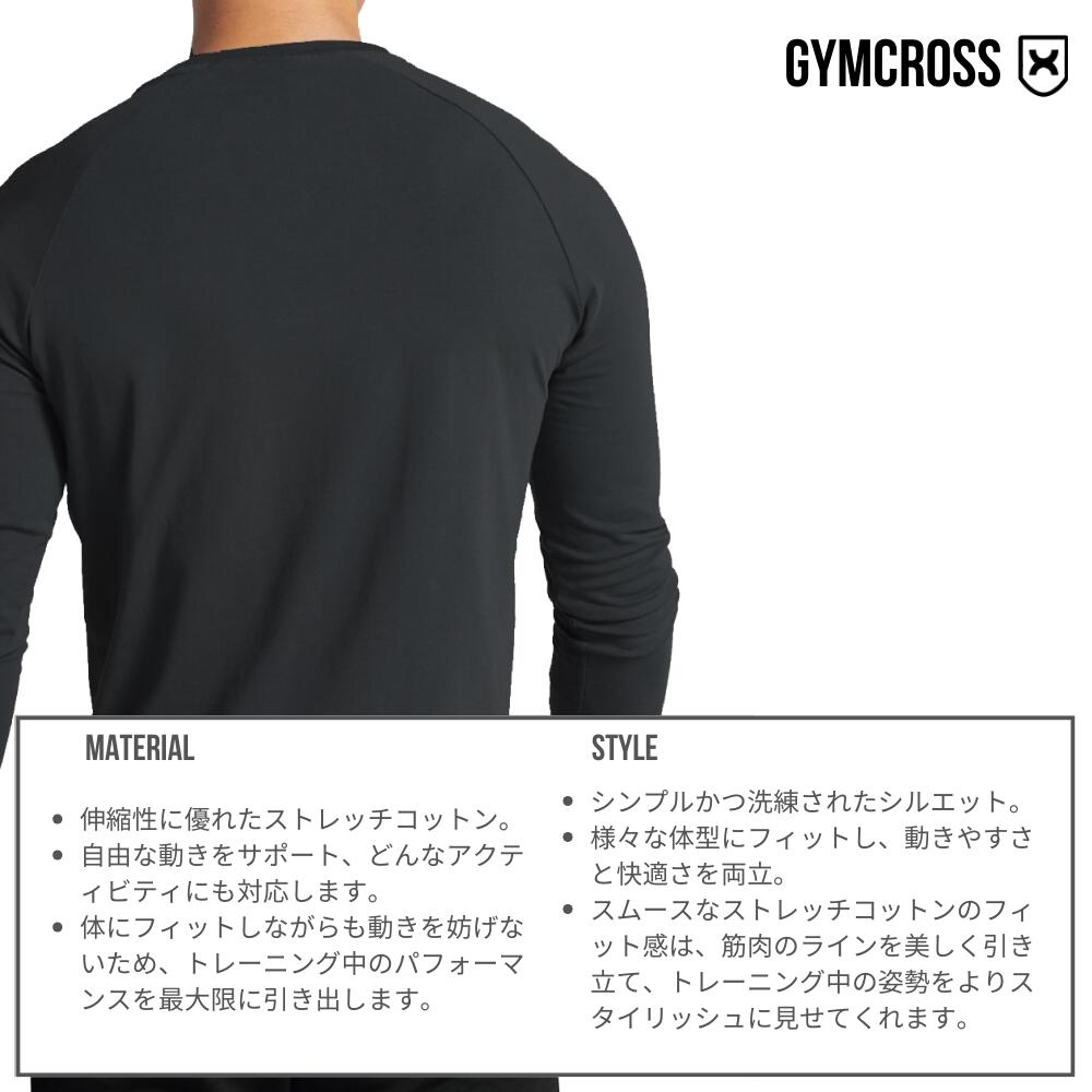 GYMCROSS ジムクロス CORE TEE 長袖Tシャツ ロングスリーブ ストレッチコットンブレンド フィットネスウェア ジムウェア フィットネスウェア スポーツウェア ランニングウェア メンズ gc-ss2