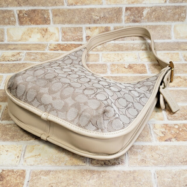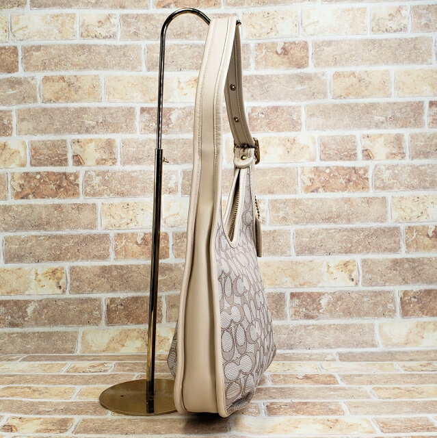 【中古品】コーチ COACH エルゴ シグネチャー ジャガードキャンバス グラブタンレザー コンビ ショルダーバッグ アイボリー