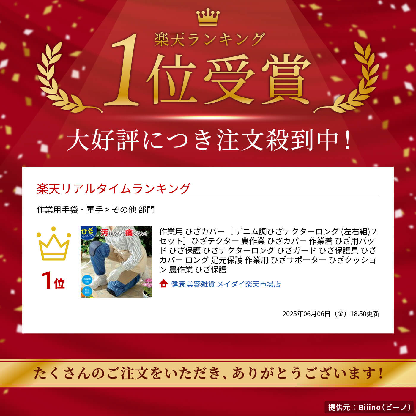 ★脚・ひざを保護して汚さない!ひざをつく長時間の作業がラク! 品名 デニム調ひざテクターロング 色柄 ブルー 材質 本体:ポリエステル、ひざ部分別布:ポリエステル、中材:ポリエチレン 生産国 中国製 (企画デザイン:日本) 適応サイズ 約 ひざ上周り 35~52cm 総丈=約57cm 重量 約 28(1枚)g メーカー 株式会社メイダイ 商品のポイント ■サッとはくだけ!従来品より3cm長くなり足首から膝上までをスッポリカバーしてズボンを汚しません。 ■ひざ部分に厚み約1cmのクッション入り。長時間のひざをついての作業が楽に行えます。 ■クッションは柔軟性があり、足の曲げ伸ばしにフィット。動きを妨げません。 ■ひざ上が2段絞りなっているので使用中のズレを防止します。 ■生地全体に、はっ水加工がしてあるので、水周りの作業でも安心。 ■園芸、農作業、お掃除、DIYなど、色々な場面で使えて便利です。 ■汚れの目立ちにくいデニム柄です。 ■洗濯機で丸洗いできます。 ギフト プレゼント 父の日、母の日、敬老の日、クリスマス、バレンタインデー、ホワイトデー、お礼、お返し、プチギフト、誕生日 プレゼントにも喜ばれています。 出産内祝い 結婚式引き出物 結婚内祝い 出産お祝い 結婚祝い 香典返し 法事 引き出物 快気祝い 敬老 還暦 ご長寿祝い 退職祝い お礼 お歳暮 お中元 ノベルティ 新築祝い 引っ越し祝い メイダイオリジナル袋でのラッピングを有料(¥330)で承っております。ご希望の場合は購入画面でギフト包装「希望する」に〇をご記入ください。大切な方へのプレゼントに是非ご利用ください。 健康美容雑貨 メイダイ楽天市場店の商品Meidai(メイダイ)で大人気の、ひざカバー(デニム調ひざテクターロング)は、ズボンを汚さず長時間ひざをついての作業もラク 作業着です。サッと履くだけで園芸、農作業、お掃除など、色々な場面で使えて便利です。あす楽対応!敬老の日、母の日にも◎プレゼントやギフトにも最適♪¥3980以上 送料無料作業用 ひざカバー | デニム調ひざテクターロング (左右組) ズボンを汚さず長時間ひざをついての作業も楽な作業着 農作業ひざテクター ■品名 デニム調ひざテクターロング ■色柄 ブルー ■材質 本体:ポリエステル、ひざ部分別布:ポリエステル、中材:ポリエチレン ■生産国 中国製(企画デザイン:日本) ■適応サイズ 約 ひざ上周り 35~52cm ■重量 約 28(1枚)g ■販売元 株式会社メイダイ ■サッとはくだけ!従来品より3cm長くなり足首から膝上までをスッポリカバーしてズボンを汚しません。 ■ひざ部分に厚み約1cmのクッション入り。長時間のひざをついての作業が楽に行えます。 ■クッションは柔軟性があり、足の曲げ伸ばしにフィット。動きを妨げません。 ■ひざ上が2段絞りなっているので使用中のズレを防止します。 ■生地全体に、はっ水加工がしてあるので、水周りの作業でも安心。 ■園芸、農作業、お掃除、DIYなど、色々な場面で使えて便利です。 ■汚れの目立ちにくいデニム柄です。 ■洗濯機で丸洗いできます。