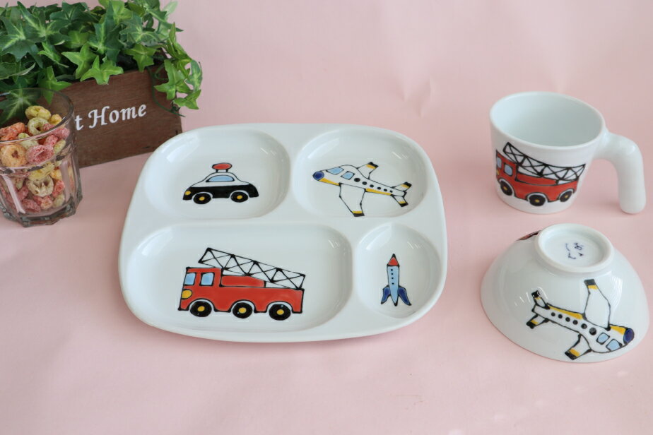 〈こども食器〉のりもの 飯碗 (約φ10.8×5.0cm) 浜陶 大新窯 こども食器 陶磁器 レンジOK 食洗器OK[OR]