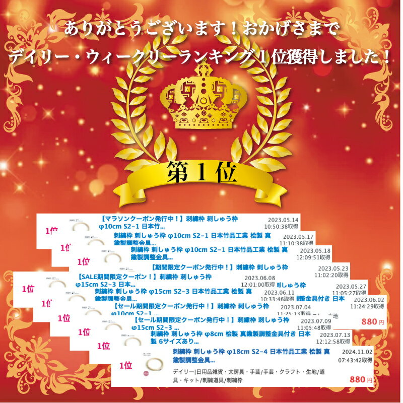 商品情報 管理番号 11028 サイズ φ15cm 素材 桧製/真鍮製調整金具付き 付属品 - 生産国 日本 注意事項 ご使用のモニター環境により若干の色の違いがございます。小さな傷がある場合がございます。シールの色・金具の柄がロットにより変更される場合がございます お問い合わせ メールにてお願いいたします。h-various@shop.rakuten.co.jp 刺しゅう枠 刺?枠 ししゅう おすすめ 丸 小さい アレンジ アート アクセサリー 便利 使いやすい 天然木 小さめ パンチニードル 絵 フレーム フラワーアレンジ ビーズ 額縁 8cm 10cm 12cm 15cm 18cm 21cm 木製 糸 インテリア 自作 固定 飾り 柄 ネジ 布 大きい 作品 最小 使いやすい 手作り 裁縫 初心者 材質 セット 素材 直径 日本製 送料無料 敬老の日 プレゼント 子供 孫 手作り刺繍枠 刺しゅう枠 φ15cm S2-3 日本竹品工業 桧製 真鍮製調整金具付き 日本製 6サイズ 円形 丸 送料無料 日用品雑貨 文房具 手芸 趣味 クラフト 道具 刺しゅう道具 敬老の日 プレゼント 子供 孫 手作り 刺しゅう枠 丸い刺繍枠なので生地に負担がかかりません 布を枠にはめた方が布が張って刺しやすくなります。 円形のものが一般的で、いろいろな大きさがありますが、直系10〜12cmの枠が使いやすいです。 刺しゅう枠 8cm 刺しゅう枠 10cm 刺しゅう枠 12cm 刺しゅう枠 15cm(このページの商品です) 刺しゅう枠 18cm 刺しゅう枠 21cm ※ レビューを書いてくれたお客様に粗品進呈いたします! ※ショップレビュー、または商品レビューを書いてくださったお客様限定で後ほど粗品を進呈いたします!※週1回、発送しておりますのでレビューを記載した日からお待たせしてしまう場合がございます。何卒ご了承くださいませ。 ご注文後、翌営業日に発送いたします。