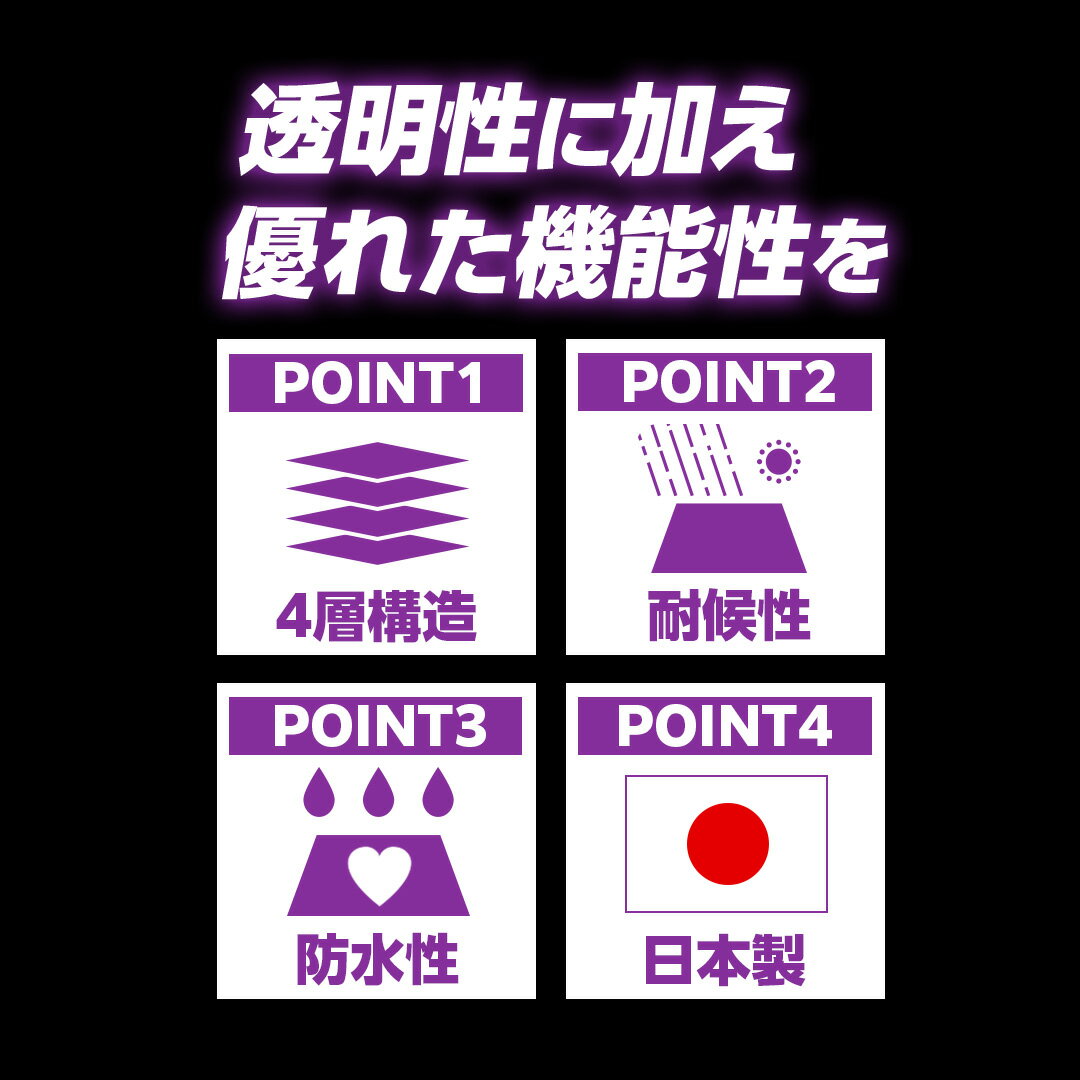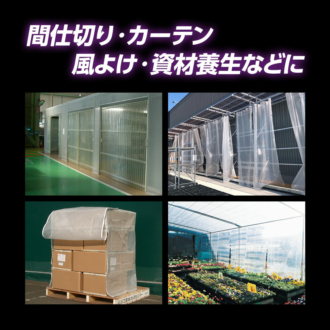 商品情報規格一覧1.8m×1.8m1.8m×2.7m1.8m×3.6m2.7m×2.7m2.7m×3.6m【まとめ買い】1.8m×1.8m 【20枚】1.8m×2.7m 【14枚】1.8m×3.6m 【10枚】2.7m×2.7m 【8枚】2.7m×3.6m 【6枚】?『透明糸入りシート』透光性能があり、紫外線劣化防止剤を添加した耐候性機能を有したポリオレフィン系素材のシートです。 透光性能を持つオレフィン系透明糸入りシートです。工場等での間仕切りカーテンや埃除け防止の簡易カーテンやカバーに。 オレフィン系素材の糸入り透明シートです。 【仕様】 ・実寸1.75mX2.62m ・色:透明(糸入り) ・厚み:約0.50mm ・ハトメピッチ:約90cm(ハトメ個数:10個) ・耐用年数目安:約4年 (当社の促進暴露試験に基く結果であり、使用状況・天候等により耐久期間は異なります) 【材質】 ・本体:ポリオレフィン ・ハトメ:アルミニウム(メーカー名の刻印有/内径:12mm) ・周囲ロープ:ポリプロピレン 【質量】 ・約0.90kg/枚 【在庫規格】 ・別途、規格表を参照下さい。 【製造国】 ・日本 注)お使いのモニターの発色具合によって、実際のものと色が異なる場合がございます。 【カテゴリ】オールシーズン 春 夏 秋 冬 ブルーシート 半透明シート 多目的シート 作業シート 養生シート 防水シート 万能シート 雨対策 雨除け 工事現場 現場作業 建築現場 資材カバー 防水カバー 保護カバー 被覆資材 リフォーム 業務用 災害対策用品 災害用 備蓄用 防災 減災 災害復旧 防災備蓄 【特徴】防水 半透明 耐候性 ラミネート 国産 日本製 高品質 サイズ多数 規格サイズ メーカー直販 公式通販透明シート UVクリア 1.8m×2.7m UVC1827H オレフィン系素材の透明シート 6