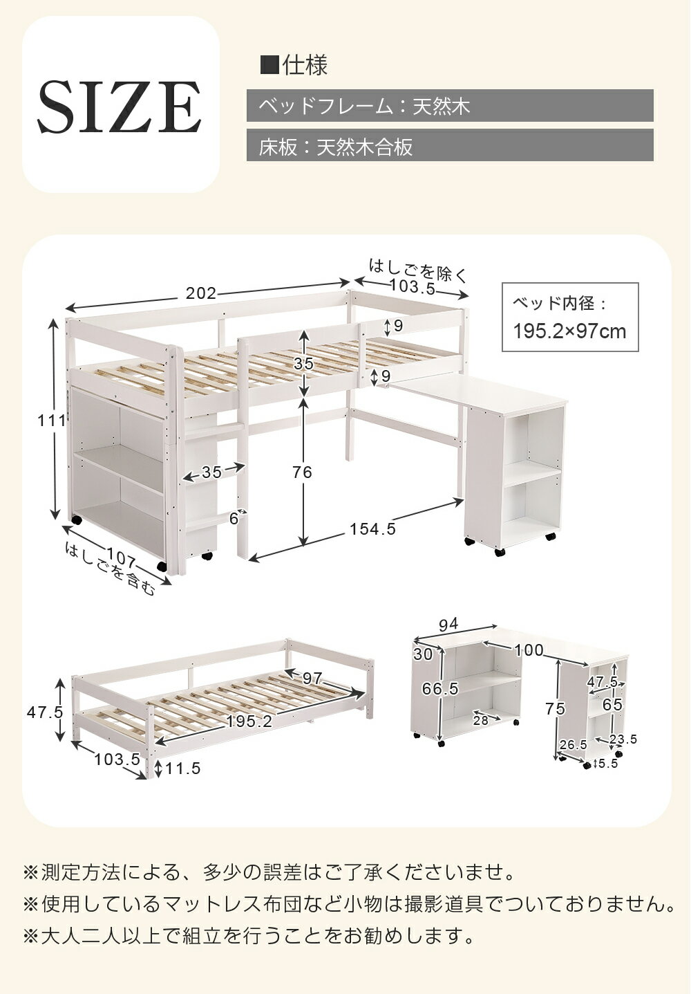 【20時〜お得クーポン&2H限定P5倍】システムベッド システムベッドデスク ロフトベッド 分割可能 ロフトシステムベッド すのこ シングル システムデスクロータイプ 学習机 ベッド ロフトベッド 本棚 ブックシェルフ セット 木製ベッド 天然木 子供用ベッド 収納棚