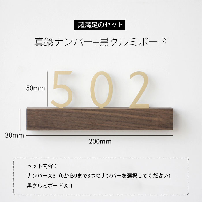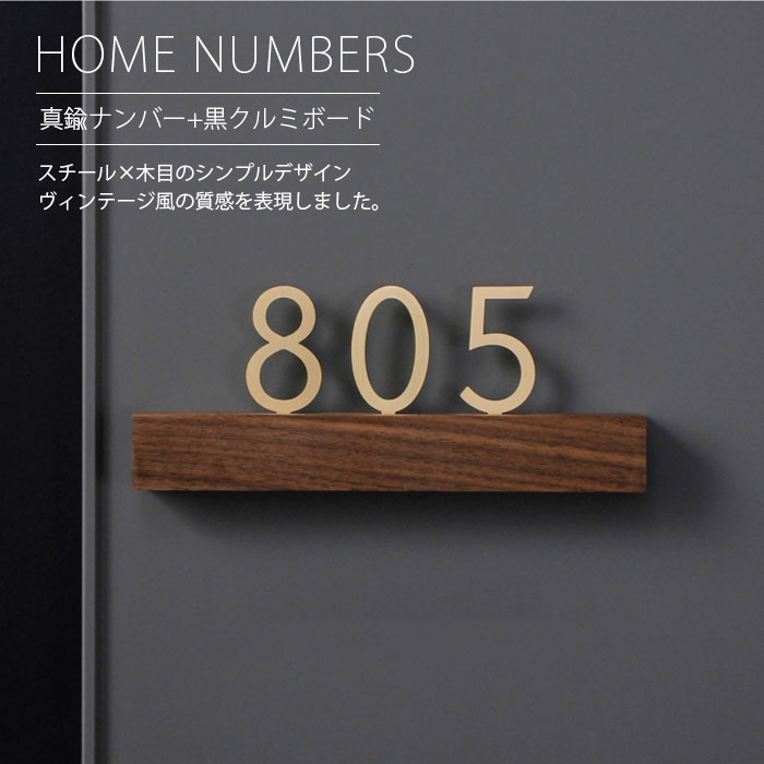 部屋番号 サインプレート 家屋番号 表札 プレート 番号 ナンバープレート 真鍮 黒クルミボード 屋外対応 戸建 ルームナンバー 数字 高級