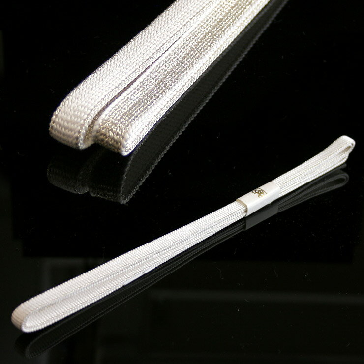 帯締め 三分紐 白×銀 リバーシブル ツートンカラー 日本製 絹100% 帯留め用帯締め ホワイト×シルバー 三分紐(ケース入り)並尺【メール便OK】【IT】