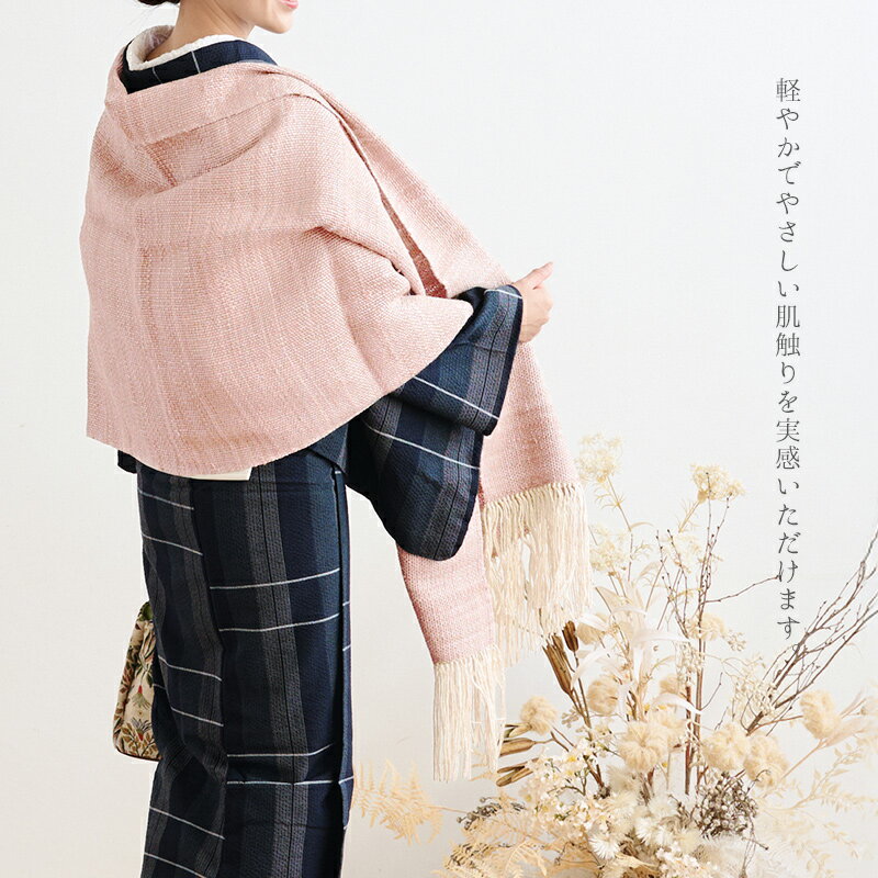 結城紬の手仕事が生む、上質なぬくもり 明治40年創業の結城の老舗・奥順による、手つむぎ・手織りの結城紬で織り上げたショールです。 絹糸が生み出す自然な光沢とふっくらとした質感は、肩にそっと馴染み、軽やかに体を包み込みます。 たて糸とよこ糸の色を変えて織り上げることで、単色にはない奥行きと、光を含んだような美しい揺らぎが生まれます。 どの色も穏やかで上品な印象に仕上がっており、和装・洋装を問わず幅広いシーンでお使いいただけます。 伝統の技が息づく結城紬のやさしい風合いを、日常の装いにそっと添えてお楽しみください。 素材と肌ざわり 空気を含むようなふっくらとした質感が魅力の真綿糸を使用。 やわらかく温かみがあり、手に取るとしっとりと包み込まれるような感触です。 職人の手仕事による、真綿ならではの上質なぬくもりを感じていただけます。 彩り豊かなカラーバリエーション アイスイエロー たて糸にクリーム色、よこ糸にアイスブルーを使用した、淡くやさしい色合いのショール。 光の角度によってほんのりと色が揺らぎ、上品な透明感をまといます。 シェルピンク たて糸にアイボリー、よこ糸に淡いピンクを合わせた、やさしく上品な色合いのショール。 ほのかに光を含んだような艶があり、穏やかな温もりを感じさせます。 ライラック たて糸にピンク、よこ糸に薄紫を合わせた、穏やかで気品のある色合いのショール。 やわらかな光沢がほんのりと揺らめき、優美な印象を添えます。 ミントブラウン たて糸にミントグリーン、よこ糸に焦げ茶を合わせた、落ち着きのある上品な色合いのショール。 深みの中にほのかな明るさが差し、やわらかな奥行きを感じさせます。 サンドネイビー たて糸にくすんだベージュ、よこ糸にネイビーを合わせた、穏やかで上品な色合いのショール。 落ち着いた中にもやわらかなぬくもりがあり、深みのある表情を楽しめます。 サイズ・使い方 約65×182cmのゆったりサイズ。肩に掛けても、ふんわり羽織っても美しいボリューム感があります。 和装・洋装どちらにも合わせやすく、寒い季節の防寒アイテムとしてもおすすめです。 無料ラッピングで、ギフトにもおすすめ 上質な結城紬のショールは、贈り物にも大変喜ばれています。 当店では無料でラッピングを承っております。 専用のギフトボックスに入っておりますので、包装紙で丁寧にお包みし、そのままお渡しいただける上品な仕様です。 お誕生日や母の日、退職・ご長寿のお祝いなど、特別な日のギフトにも最適です。 お手入れの仕方・取扱い上の注意 洗濯は中性洗剤を使用し、陰干しをしてください。 色移りする場合があるので単独で洗濯してください。 選択により縮むことがあります。 アイロンはあて布をして低温でかけてください。 摩擦により毛羽立ちや色移りが起きる場合があります。 色が浮くことや引っかかることがあるのでご注意ください。 色やサイズ、糸質には若干の個体差があります。 真綿まとうショール 無地 真綿の素材感をそのままに活かし、手織りで丁寧に織り上げています。 たっぷりと空気を含んでいるのでボリュームがありながら驚くほど軽く身体を暖かく包み込んでくれる大判のショールです。 ※本商品はご注文後にメーカーよりお取り寄せいたします。 在庫状況により、ご注文後でも在庫切れとなる場合がございます。 あらかじめご了承ください。 その際は速やかにご連絡のうえ、ご注文内容の調整またはキャンセルにて対応させていただきます。