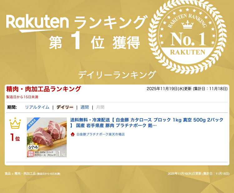 商品情報名称豚カタロースブロック産地岩手県 花巻市内容量500g × 2 (計1000g)消費期限ラベルに記載製造より60日ただし冷凍からの解凍後は2日以内にお召し上がりください。※解凍後の再冷凍はご遠慮ください。保存方法冷凍加工業者高源精麦株式会社〒025-0092 岩手県花巻市大通り一丁目21−1関連キーワード【白金豚は岩手花巻のプレミアムポークです】国産 岩手 花巻 プレミアムプラチナポーク 新鮮 SDGs ブランド豚 銘柄豚 地産地消 自然 認証 安心 安全 豚肉 長期保存 冷蔵 冷凍【季節の贈答やイベントに】正月 年賀 年始 バレンタイン ひなまつり こどもの日 母の日 父の日 お盆 御中元 残暑見舞い 敬老の日 ハロウィン 寒中見舞い クリスマス 御歳暮 年末年始 パーティー ホームパーティー【お祝いに】贈答品 ギフト 贈り物 プレゼント 誕生日 バースデー 結婚 結婚祝い 出産 出産祝い 節句 七五三 祝還暦 還暦祝い 華甲 新築祝い 引越祝い 入園祝い 入学祝い 進学祝い 卒業祝い 就職祝い 保育園 幼稚園 小学生 進学内祝い 快気祝い 全快祝い 快気内祝い 退院祝い 合格祝い 成人式 記念日 周年記念 引き出物【法人行事に】転職 お餞別 贈答品 おもたせ 手土産 心ばかり 寸志 新歓 歓迎 送迎 新年会 忘年会 二次会 記念品 景品 開店祝い 開業祝い 開院祝い【ご挨拶、手土産にも】プチギフト お土産 手土産 岩手土産 ごあいさつ お見舞い 引越し挨拶 お使い物 ご進物 贈答 御礼 お宮参り御祝 志 進物【イベントの景品に】クリスマス 新年会 忘年会 歓迎会 送迎会 同窓会 宴会 二次会 ゴルフコンペ ボーリング大会 ビンゴ大会 結婚式 結婚式二次会 サッカー フットサル 野球 ゲーム スポーツ 景品 参加賞 粗品【ご家庭の健康に】お取り寄せ 取り寄せ アウトドア キャンプ BBQ バーベキュー 山 グランピング ハイキング お弁当 キャラ弁 幼児食 つまみ ディナー ご褒美 自宅用 一人暮らし 家庭料理 常備菜 仕送り 餃子 スープ 中華 ラーメン 鍋 惣菜 おかず お弁当 ビール 日本酒 ワイン おつまみ 和食 洋食 中華 イタリアン フレンチ・カレー・スパイス・ビリヤニ・タンパク質 必須アミノ酸 コラーゲン ビタミン ビタミンA ビタミンB ビタミンC ビタミンD ビタミンE ミネラル カリウム カルシウム マグネシウム 鉄分 亜鉛 オレイン酸 アラキドン酸・カルニチン【みなさまにご好評いただいています】美味しい おいしい ジューシー やわらかい 肉汁 上品 上質 高級 プレミアム 人気 おうち時間 おうちごはん 筋トレ 宅トレ 肉体改造 減量 食べ痩せ ダイエット 脂肪燃焼 コロナ太り解消 美容 美肌 美髪 ヘルシー トレーニング 産後ダイエット ボディメイク 健康 長生き 生活習慣病予防 認知症予防 動脈硬化予防 スタミナ 滋養強壮 栄養補給 疲労回復 免疫力アップ 免疫力向上 自然治癒力向上 貧血予防 記憶力アップ 集中力アップ 冷え性改善 新陳代謝 リラックス効果 ストレス軽減 食育 好き嫌い克服 幼児食【大切な方へ】家族 お父さん お母さん おじいちゃん おばあちゃん 親戚 兄弟 姉妹 いとこ 子供 先生 恩師 上司 先輩 後輩 同僚 取引先【さまざまな方にご利用いただいています】女性 男性 主婦 料理人 プロ シェフ ソムリエ 飲食店 レストラン カフェ ホテル お弁当女子 料理男子 お弁当男子 筋トレ女子 宅トレ女子 ボディビル 山ガール キャンプ女子 美容男子関連商品送料無料・冷蔵配送 【 白金豚 カタロース ブロック 1kg 真空 5...送料無料・冷蔵配送【 白金豚 ロース ブロック 1kg 真空パック 】...送料無料・冷蔵配送【 白金豚 カタロース ブロック 丸1本 】 2kg...5,540円5,650円9,325円送料無料・冷蔵配送【 白金豚 ロース 120g 5枚 計600g フレ...送料無料・ 冷蔵配送【 白金豚 ロース ブロック 500g 】 国産 ...飲食店応援!送料無料・冷凍配送【 白金豚 カタロース ブロック 丸1本...5,700円3,760円8,670円送料無料・冷蔵配送【 白金豚 ロース ブロック 2kg 】 国産 岩手...送料無料・冷蔵配送 【白金豚 焼肉 鍋用 カタロース スライス 500...飲食店応援!送料無料・冷凍配送 【 白金豚 カタロース ブロック 丸2...10,270円5,540円16,740円送料無料・冷凍配送 【 白金豚 ロース 120g 5枚 計600g 】...送料無料・冷蔵配送【 白金豚 ロース 焼肉 鍋用 スライス 500g ...送料無料・冷蔵配送【 白金豚 ヒレ ブロック 3本 】 約1kg 国産...5,700円5,650円5,870円【冷凍配送・送料無料】白金豚 カタロース ブロック 1kg 真空 500g 2パック 国産 岩手県産 豚肉 プラチナポーク 銘柄豚 ブランド豚 お取り寄せ グルメ ギフト 贈り物 花巻東北 花巻名物 チャーシュー カタロースブロック 真空パック 500gが2つ入ったお得なセット。 うまみあふれ白金豚。飲食店ホテルのプロのシェフ達に認められたお肉をご家庭でどうぞ。 お口のなかにジューシーな肉汁が広がる!旨味たっぷりポーク 旨味がギュッと詰まった赤身の中に、さっぱりと甘い脂が網目状に入っているカタロース。 香りと歯ごたえが強いお肉ですが、煮込むと柔らかくなり、 角煮やチャーシューはもちろん、厚切りにカットしポークステーキとし