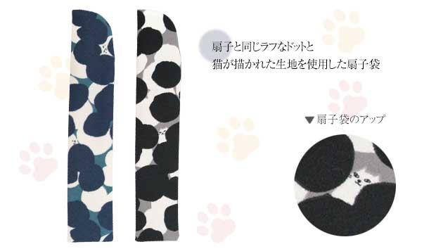 扇子 レディース <ハイドキャット扇子セット> 袋ケース付き 女性用 母の日 お中元 名入れ プレゼント ギフト 記念日 お祝い おしゃれ かわいい モダン ピンク ブルー グリーン 猫 ブランド 【創業1718年 京都老舗 扇子の白竹堂】