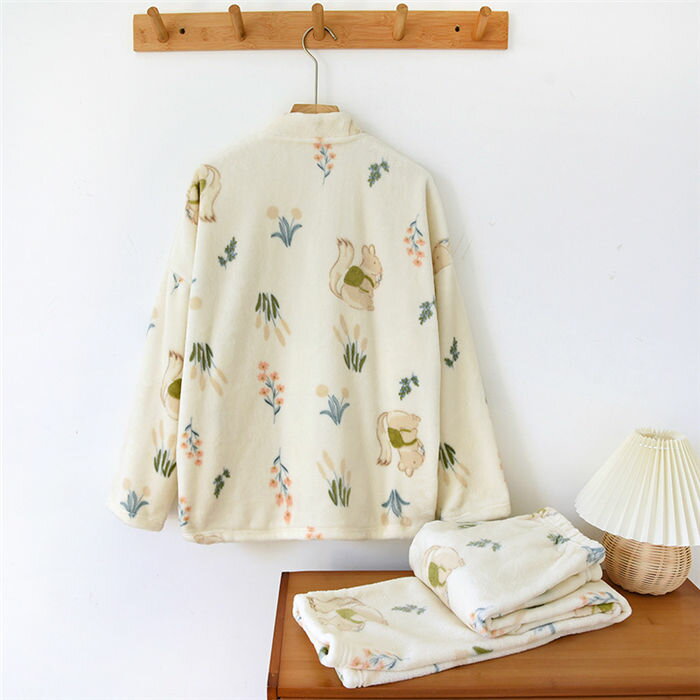 パジャマ ルームウェア 2点セット 上下セット レディース 冬 暖かい 着心地 裏起毛 Vネック 長袖 前開き ロングパンツ セットアップ もこもこ 大人 秋 快適 部屋着 上品 可愛い リス柄 ネコ柄 猫柄 ナイトウェア 寝巻き 修学 旅行 プレゼント ふわふわ 30代 40代 50代