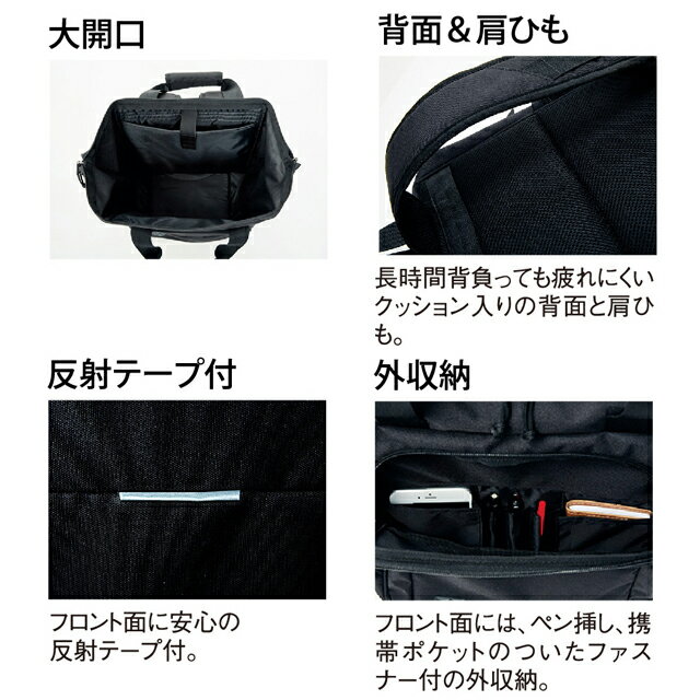 ●製品名:YONEX×キラク/大容量訪問に最適ポケットいっぱいリュックレインカバー付 ●品番:CY950 ●メーカー:KIRAKU(キラク) ●ブランド:YONEX(ヨネックス) ●素材:ポリエステル100%(撥水ポリエステル) ●サイズ:フリー(高さ43cm・幅29cm・マチ18cm) ●容量:24L(本体:22L、外ポケット:2L) ●カラー:ブラック(CY950-09)口が大きく開き中身が見やすい多機能リュック。レインカバー付きで急な雨でも安心。レインカバーはリュック本体の底ポケットに収納できます。 レインカバーには、レインカバーをしたまま外ポケットの中身が取り出せる開閉口付き。カバーがずれない固定ベルトもついているので鞄の中身を雨からしっかり守ります。 背面&肩ひも:長時間背負っても疲れにくいクッション入りの背面と肩ひも。 大開口:中身が見やすい大開口。出し入れしやすい背身側のみワイヤー入り。 反射テープ付き:フロント面に安心の反射テープ付。 外収納:フロント面には、ペン挿し、携帯ポケットのついたファスナー付の外収納。 背身ポケット:背負ったまま取り出しやすい背身ポケット。内側に便利なキーポケット付。 たっぷり収納:クッション入りのパソコン収納ポケット付。ドリンクポケットも付いて充実の機能。 持ち手ハンドル付:楽に手持ちできる2本のハンドル&持ち手カバー付。