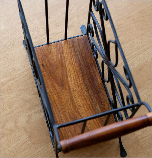 存在感たっぷりのマガジンラック 小ぶりのデザインで お洒落なマガジンラックです アラベスク模様のアイアンが目を引きます 持ち手もしっかりとしていて 重い本を入れても移動に便利です スリッパ入れにもお薦めです 商品詳細 商品名 シーシャムマガジンラック 商品番号 kan7841 全体サイズ(cm) 幅37×奥行17×高さ37 収納部分の中サイズ 幅25.5×奥行15.5×深さ26 重量 2.5kg 材質 アイアン シーシャムウッド ※サイズ・重量はおおよその値です 一つずつ手作業での生産につき多少の違いはご了承ください - 備考 - 手作り品のためサイズや形に少々の歪みがあります。商品の味として予めご了承下さい ディスプレイによる色の違いはご了承下さい >> 「マガジンラック」はこちら >> 「スリッパラック」はこちら >> 「シーシャムウッドインテリア」はこちら【ご購入のお客様のお声 商品レビューより抜粋】 素敵な楽譜ラックに ピアノ下に練習中の楽譜を収納するラックを探していました。 専用のワゴン収納も検討しましたが、よりコンパクトなマガジンラックにしようと購入しました。とてもしっかりとした作りで、本を縦に収納する形なので、楽譜がたわんだりすることもなく大満足です。 何よりアイアンと木のデザインが我が家にぴったりで大変気に入りました。 楽譜入れに♪ ピアノの脇に置く楽譜入れとして購入しました。ツェルニーやソナタアルバムなどの教本なら10冊ぐらい余裕で入り、横幅や深さもちょうどいいサイズです。デザインも素敵です。 目の高さでまじまじと見ると、真ん中の柄が交差する部分の溶接に素人っぽさが感じられるので、★-1にしましたが、床にじかに置いて上から目線で見ると全く気になりません。ショップからのメールや商品到着も早くて、とても気持ちよくお買い物できました。 何気なく在るだけで落ち着く感じ アールデコ調で予想以上に素敵です。 リビングの一角に何気なく在るだけで落ち着く感じです。サイズもちょうど良く、実用製も○です。 雑誌はもちろんのことスリッパ入れにも代用 当初スリッパラックを探していましたが、このマガジンラックをみつけ気が変わりました。雑誌はもちろんのことスリッパ入れにも代用でき考えようによってはいろいろお洒落な使い道ができそうでなにか楽しくなります。 ただ足元が細いので床が傷つくかもと思っていましたが心配無用でした。床に接する部分が広く平らな為 床の上で滑らせても傷はつきません。ギギlivingさんの商品は安心して購入できます。 どっしりと重量感あり 散らばりがちな雑誌や新聞をちょこっとまとめるために、リビングの片隅に置くものを探していました。通販の家具系は決行見た目よりちゃちなことがあるのですがこちらは、どっしりと重量感もあり、かなりしっかりしており、大満足です。ベッドルームにも欲しくなりました(^^y