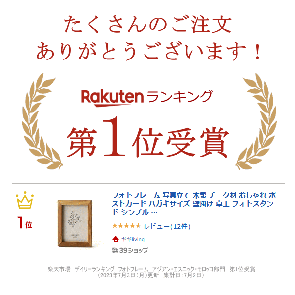 チーク古材 古材の中でも過去に 建築資材として使われたことのある リサイクルウッドを使用して作った チークウッドのフレーム 着色やワックスを使用せず 自然に風化したナチュラルな風合いで 滑らかな質感と美しい木肌の ナチュラルなデザインです お気に入りの絵葉書や写真 雑誌の切り抜き、押し花などを入れたり 壁にサイズ違いでいくつか並べて飾ったり いろいろな使い方で楽しめる 存在感のあるシンプルなフレーム L判より少し大きめのポストカードサイズにおすすめです 商品詳細 商品名 チークウッドフレーム ポストカード 商品番号 ify5856 全体のサイズ(cm) 幅13×奥行1.3×高さ17.2 写真窓のサイズ 横9.5×縦14 材質 チーク古材 アクリル 他 重量 160g 生産国 タイ ※サイズ・重量はおおよその値です 一つずつ手作業での生産につき多少の違いはご了承ください - 備考 - 挿入されているカードの絵柄は変更になる場合があります 縦、横置き、壁掛けに対応します 壁取り付け用ネジは付属していません チーク古材を使用しているため形・サイズに個体差がありますが、お選びいただけません 木の傷や欠け等は木の表情としてご了承ください アクリルのキズ等はご容赦ください ディスプレイによる色の違いはご了承下さい >> 「写真立て・フォトフレーム」はこちら >> 「こだわりギギらいふ」はこちら木の質感をそのまま活かした シンプルなフレーム スタンド用の丸棒付き 縦横両用です サイズ違いもあります シリーズ一覧はこちら L判 ポストカード 2L判 A4 A3