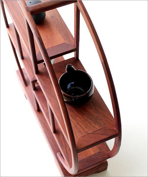 飾り棚 和風 和室 床の間 丸形 円形 シノワズリ 珍品棚 盆栽棚 違い棚 和家具 玄関 丸い 木製 シェルフ シンプル ディスプレイラック コレクションラック 和のコレクション棚 丸