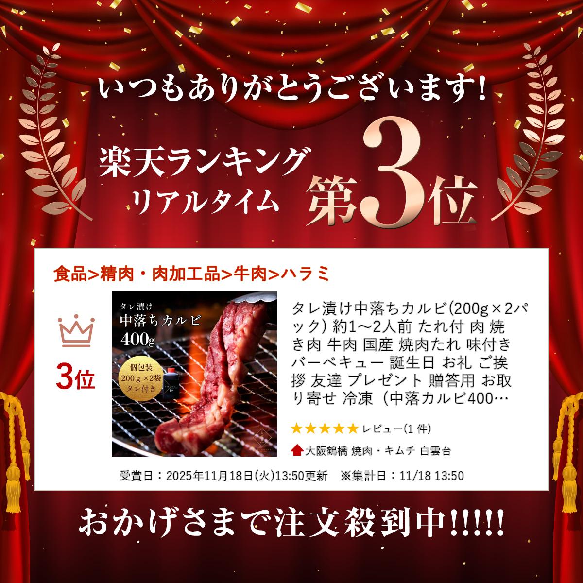 \楽天ランキング入賞/ クリスマス タレ漬け中落ちカルビ(200g×2パック) 約1~2人前 たれ付 肉 焼き肉 牛肉 国産 焼肉たれ 味付き バーベキュー 誕生日 お礼 ご挨拶 友達 プレゼント 贈答用 お取り寄せ 冷凍 (中落カルビ400g) 大阪老舗 鶴橋 焼肉白雲台 お歳暮