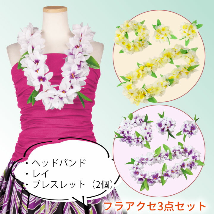 即納★ フラアクセ3点セット [CN-GD004-3665-3835] レイ ヘッドバンド ブレスレット プルメリア フラダンス フラ 衣装