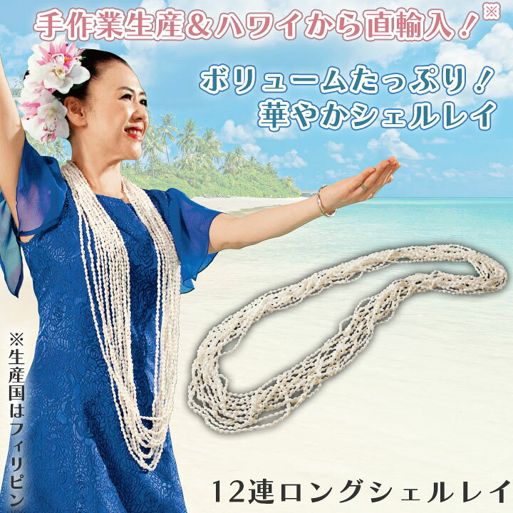 即納★ 12連シェルレイ [3403-CN-GD040] フラダンス フラ フラダンス衣装 フラ衣装 レイ アクセサリー 衣装 小物 シェル 貝殻 ハワイアン ホワイト 天然 衣装小物 発表会 ダンス フラアクセサリー フラダンスアクセサリー ハワイ ハワイアン 貝 白 ホワイト